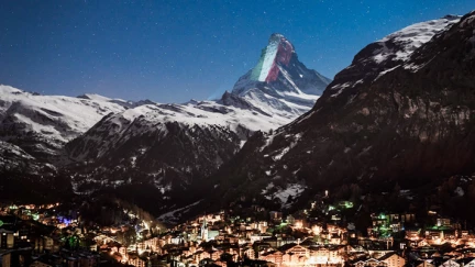 В Швейцарии на вершине горы Маттерхорн проецируют флаги стран и слова поддержки пострадавшим от пандемии COVID-19