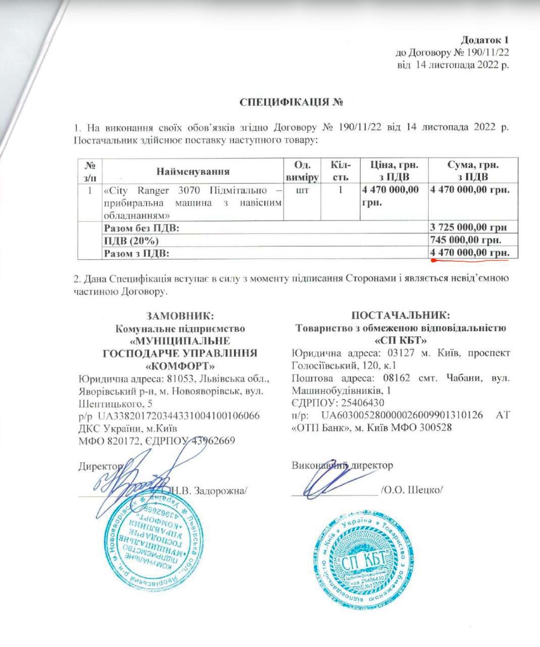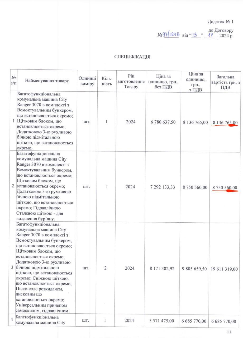 — Я специально проверил, по какой цене такую же технику покупали в других городах, и нашел закупку, где такую же машину приобрели менее чем за 5 миллионов гривен. И это при том, что там покупали одну машину, а мы — пять. Логично было бы ожидать скидку за объем, а не наценку в миллионы. Нам могут рассказывать про «другие комплектации», «курс доллара» и «навесное оборудование». Но цифры упрямые: курс доллара вырос примерно на 16%, а цена машины у нас почему-то выше на 60%, навесное оборудование не стоит несколько миллионов за комплект, — пояснил он.