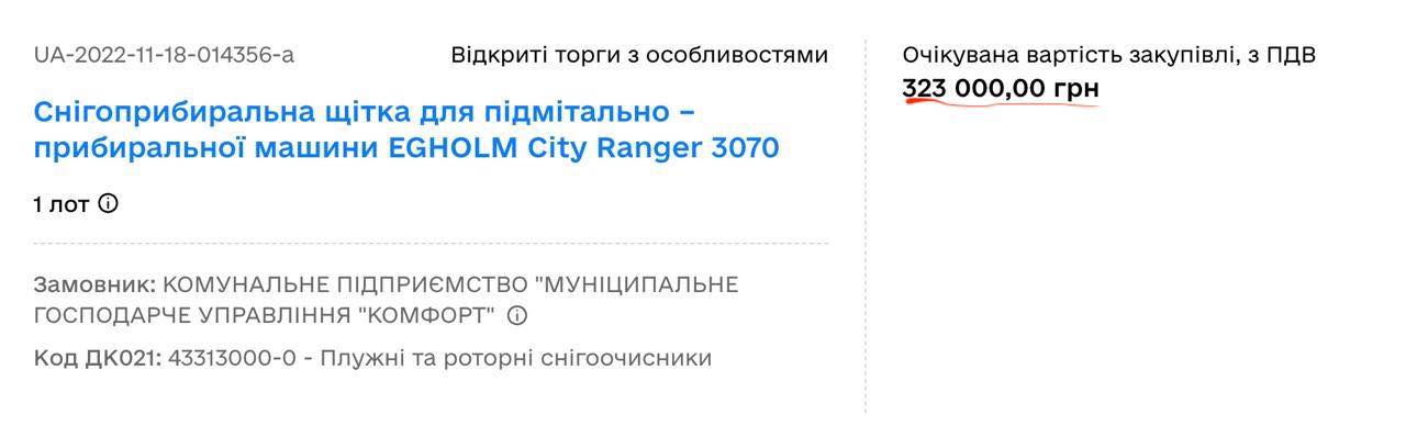 Ціни за аналогічну одиницю прибиральної машини в закупівлях інших регіонів. Фото: скриншот Андрій ЄрмолаєвЦены за аналогичную единицу уборочной машины в закупках других регионов. Фото: скриншот Андрей Ермолаев