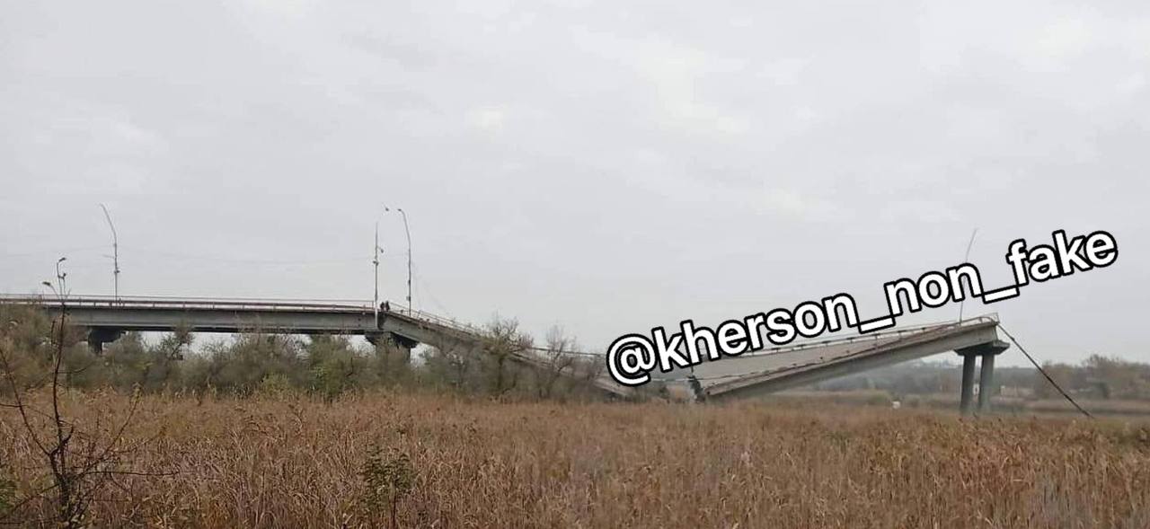 В Херсонской области за последние сутки разрушено как минимум 11 мостов и переправ. По сообщению местных жителей и военных, мосты взорвали сами оккупанты для замедления продвижения ВСУ.