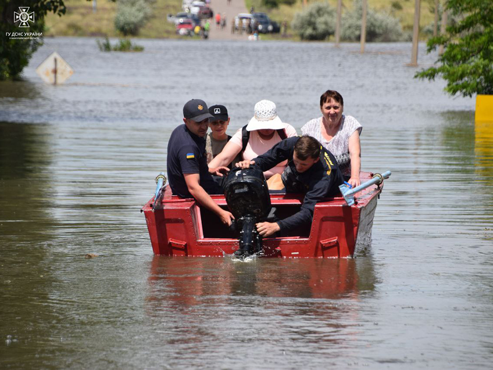 Как следствие начало полностью или частично затапливать территорию Херсонской и Николаевской областей, в частности сами областные центры. Людей и животных из Херсонской области автобусами и поездом эвакуируют из Херсона в Николаев и другие города.