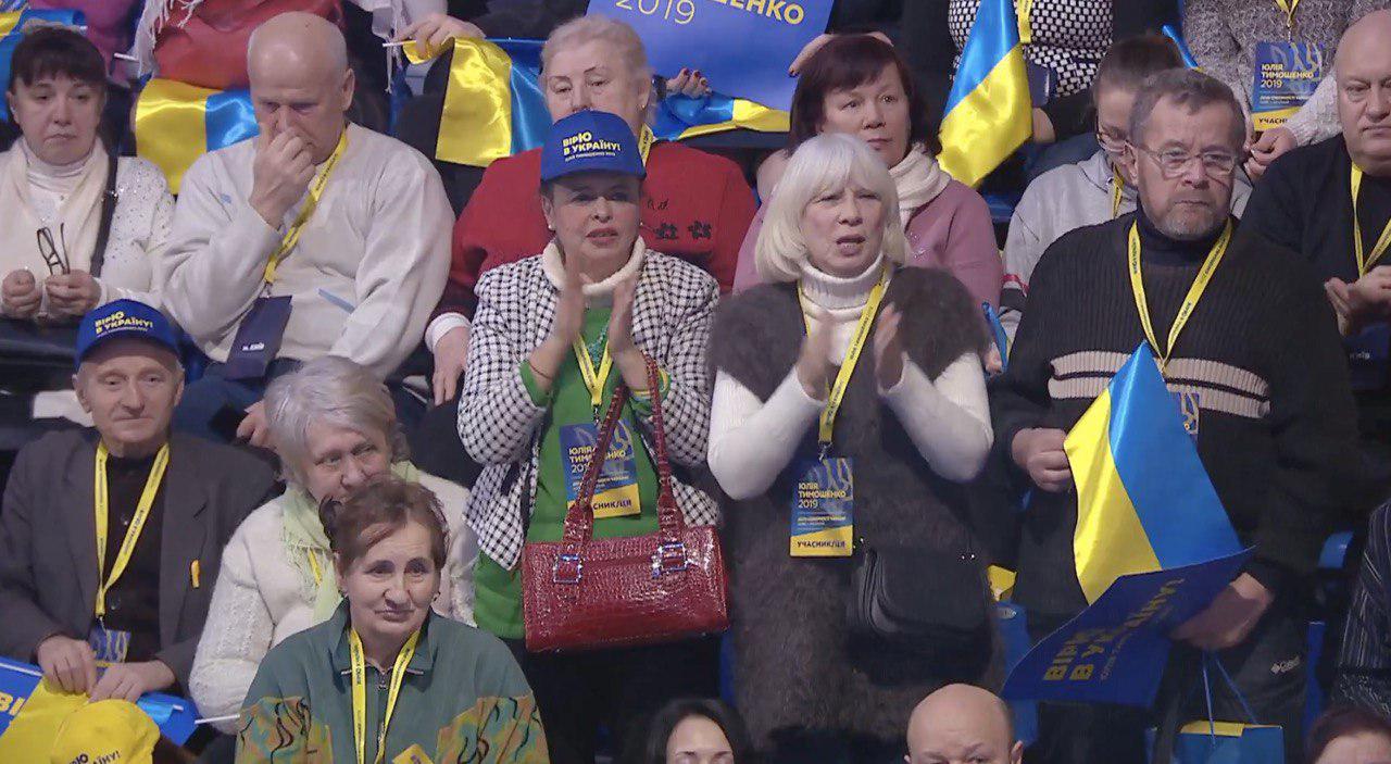 На съезде присутствует молодежь в желто-голубых футболках с флагами Украины, некоторые держали плакаты «Молодежь выбирает Юлию Тимошенко».