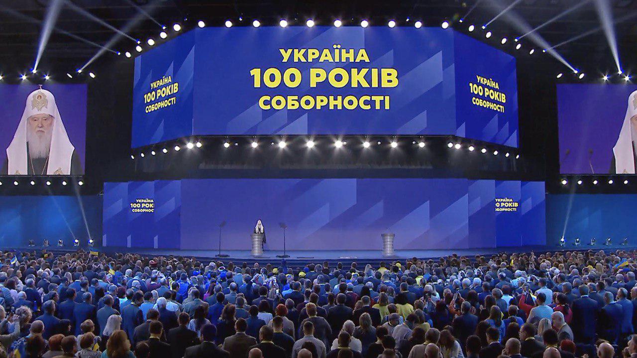 В начале съезда перед участниками выступил бывший предстоятель Украинской православной церкви Киевского патриархата Филарет. После чего хор исполнил песню «Боже великий, единый, нам Украину храни».