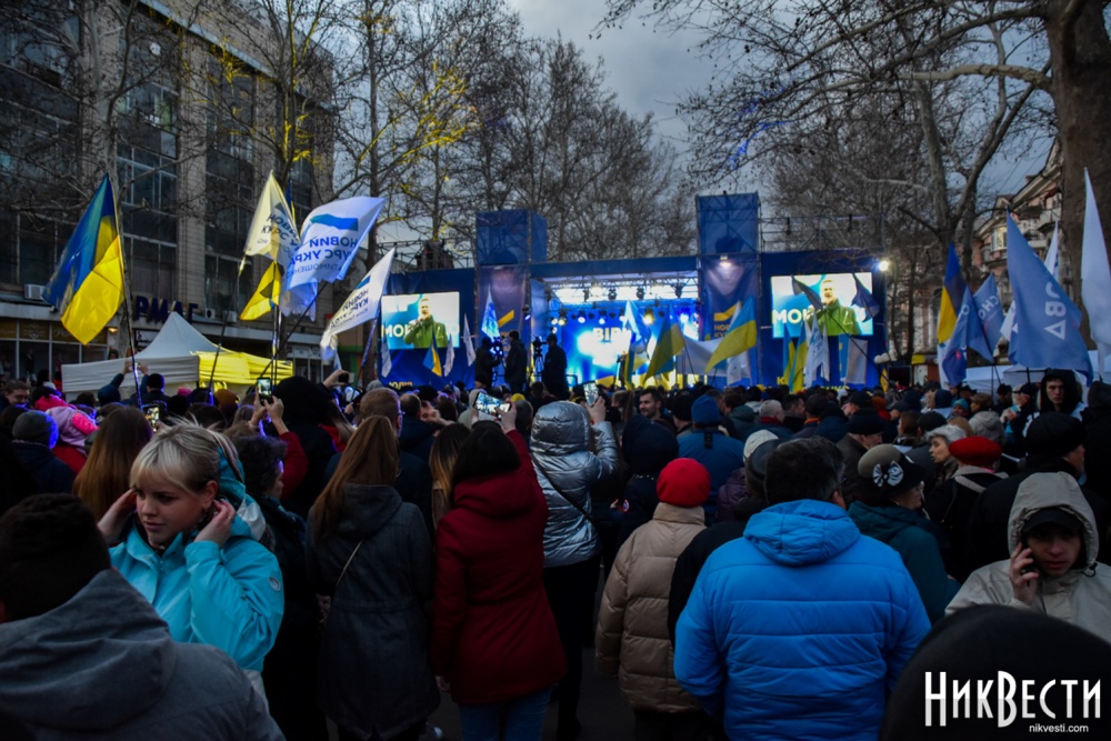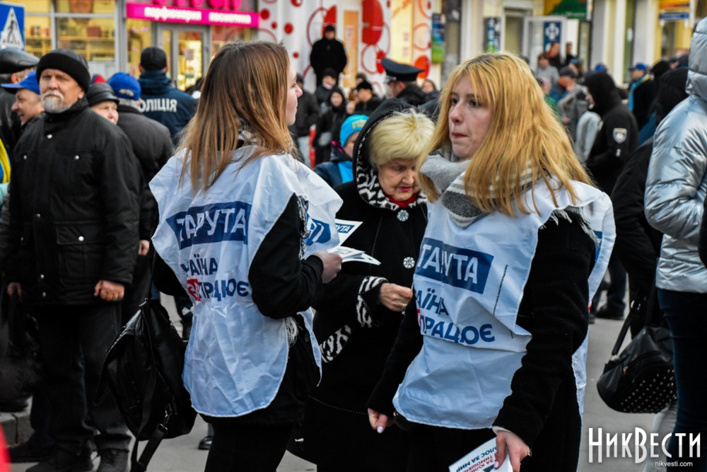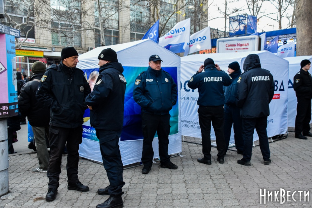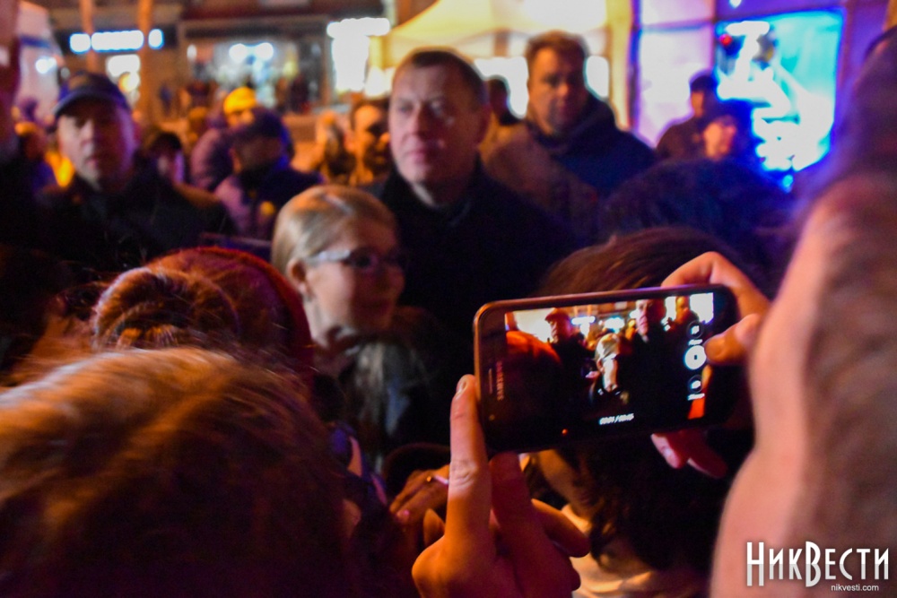 Встречу с николаевцами кандидат провела на улице Соборной, она сопровождалась концертом Александра Пономарева. По словам самих правоохранителей, приблизительно на Соборной собралось от 400 до 500 человек. При этом для охраны правопорядка были задействованы 270 сотрудников полиции.