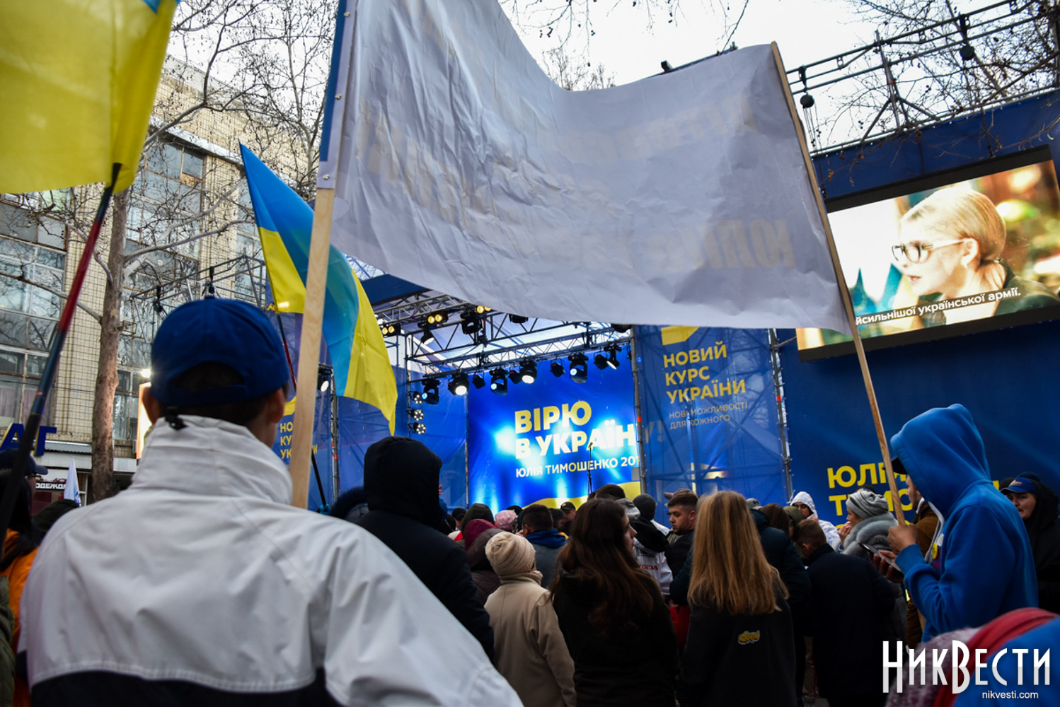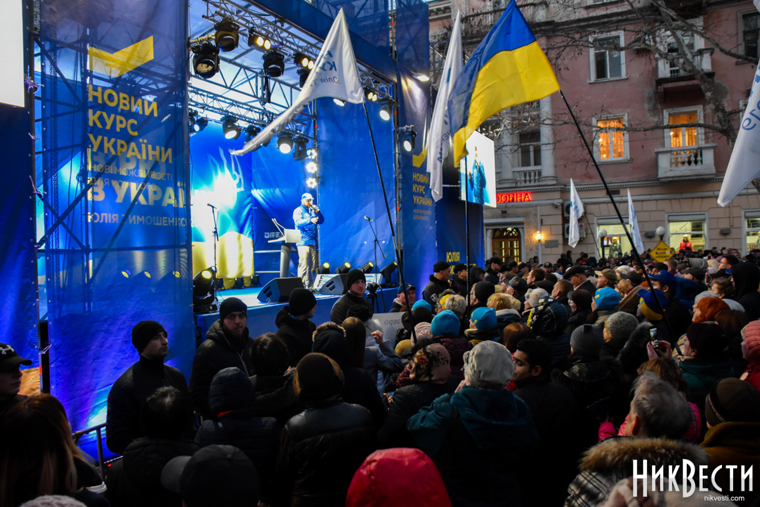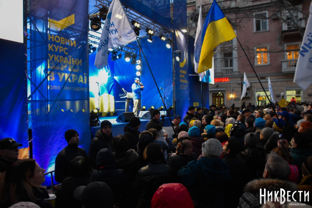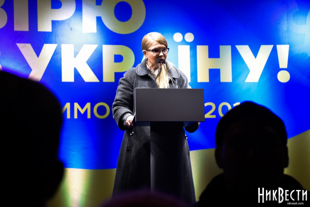 В своем обращении к николаевцам кандидат раскритиковал действующую власть, медицинскую и пенсионную реформы, рост цен и тарифов, ход президентской кампании. Также Юлия Тимошенко агитировала горожан поддержать ее и предлагаемую ею программу «Нового экономического курса». Однако при этом кандидат не вспомнила ни о проблемах города Николаева, ни самой Николаевской области.