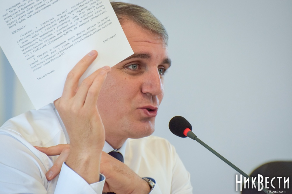 — У нас есть объект собственности, который размещен на николаевской земле, который построен за деньги николаевской общины, за деньги, которые мы выделили из городского бюджета, и сегодня этот объект остается в собственности государства. Я имею в виду спортивный городок в Парке Победы. Меня заверили, что этот вопрос уже решен, что спортгородок уже готовы передать в собственность города, однако по сегодняшний день этот вопрос не обсуждался. Более того, на сегодняшний день, для того, чтобы этот городок работал, мы его взяли в аренду на льготных условиях у Министерства образования. Не идиотизм ли это? Эпитета мы больше не найдем, чтобы описать эту ситуацию. Это все земля, деньги и еще мы его сейчас условно там арендуем, - сказал Александр Сенкевич.