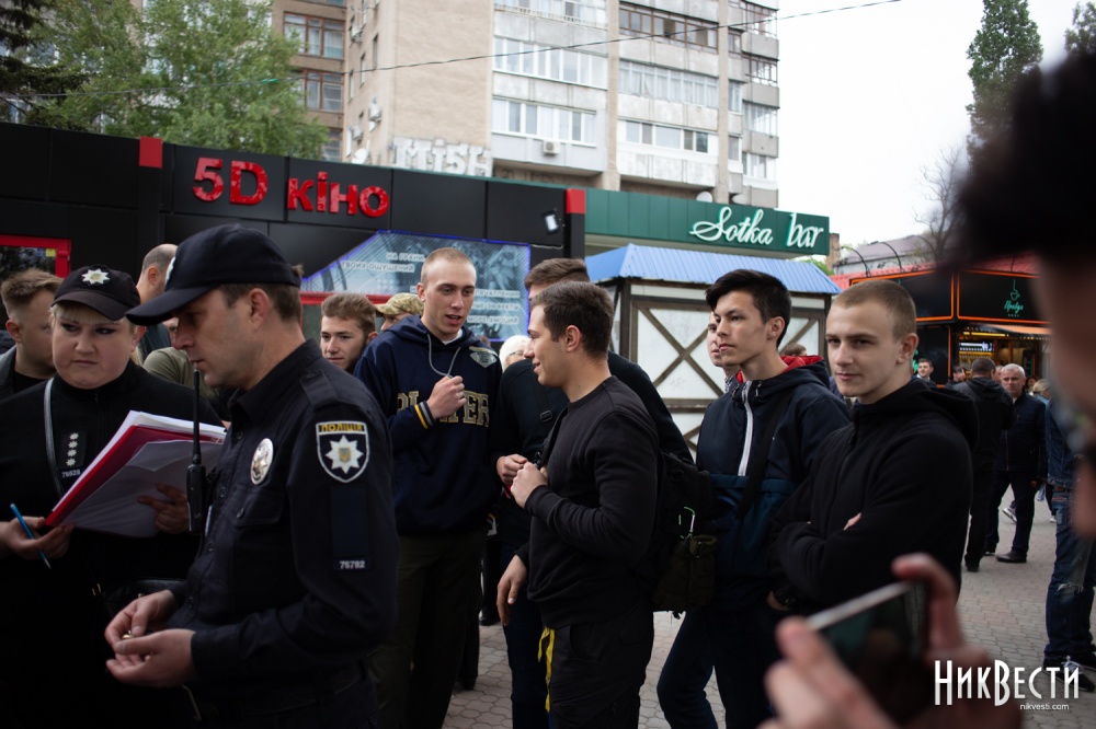 Во время марша «Бессмертного полка» в Николаеве неизвестный пытался бросить в колонну дымовую гранату. Мужчину с длинной картонной трубкой в руках на пересечении улиц Соборной и Потемкинской вовремя заметили полицейские. Увидев направлявшихся к нему сотрудников полиции, мужчина отбежал в сторону и сунул находившийся у него в руках предмет в водосточную трубу возле магазина «Спорттовары». Первоначально мужчина не отрицал, что хотел бросить данный предмет в колонну бессмертного полка. Что именно он пытался бросить, выяснили прибывшие на место эксперты. Предмет идентифицировали как армейскую дымовую гранату РДГ 2б.