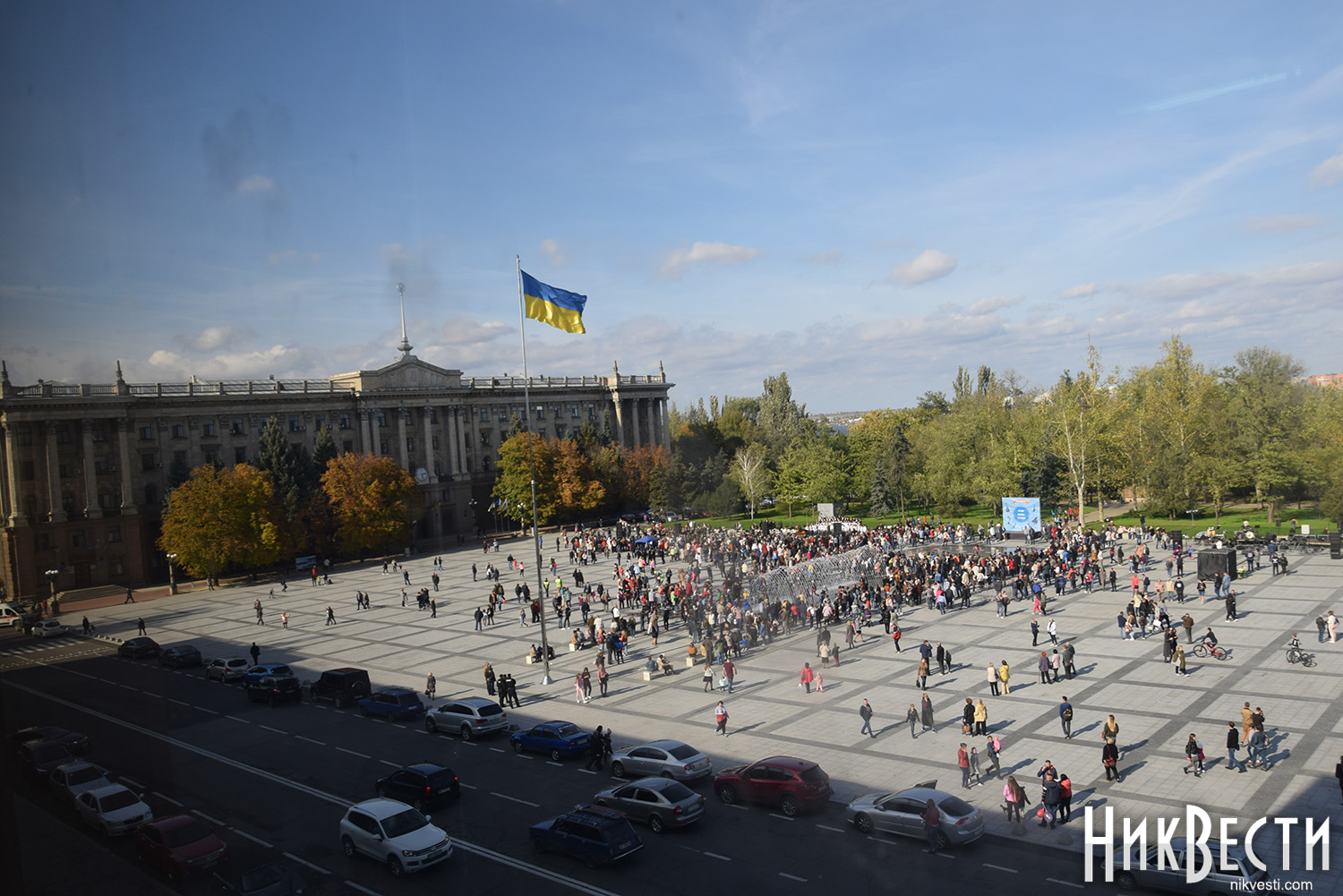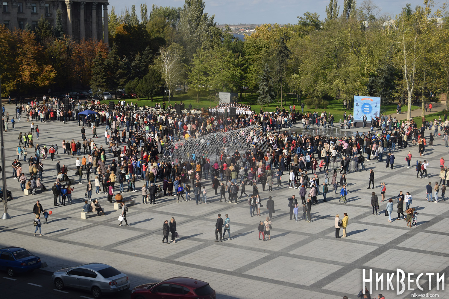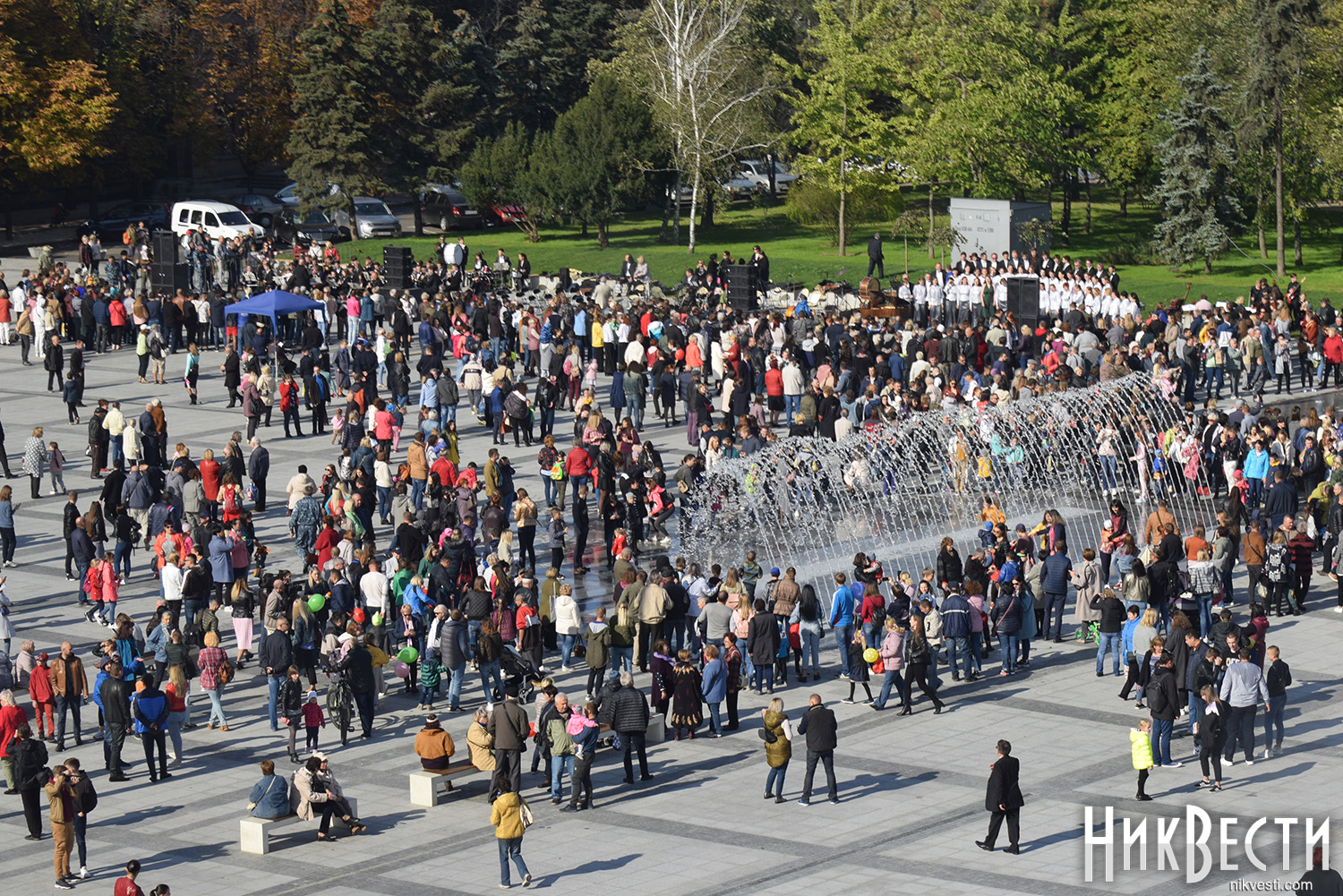 Запуск фонтанов был подготовлен к музыкальному празднику - осеннему open-air «Площадь. Музыка. Фонтаны», который стал подарком для всех горожан от городского головы Александра Сенкевича. Для зрителей выступили лучшие ансамбли и коллективы Николаева.
