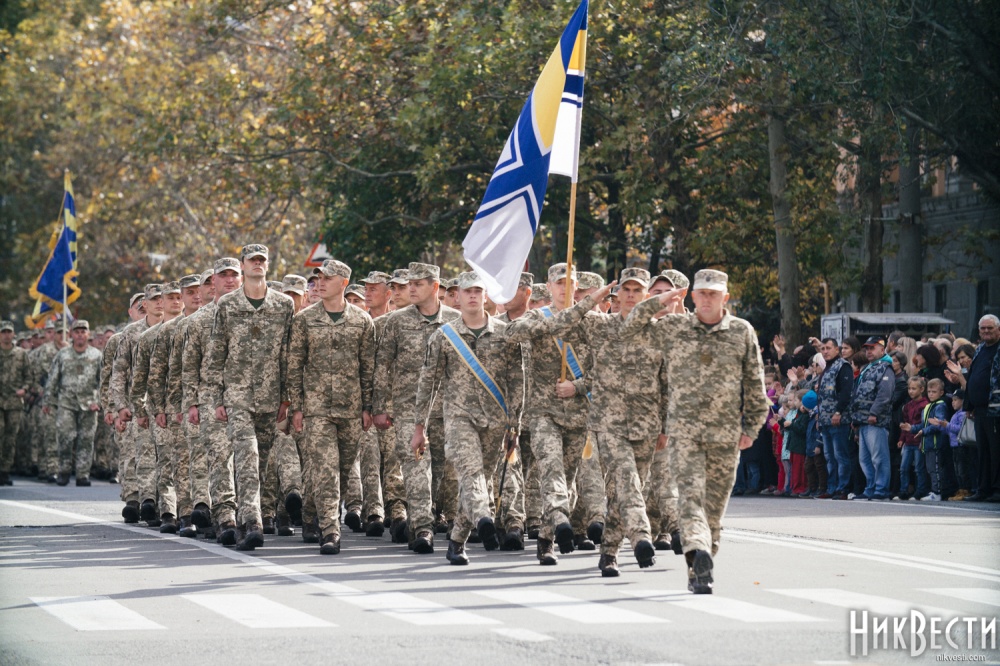 Сегодня, 14 октября, на Соборной площади в Николаеве прошел торжественный военный марш, приуроченный ко Дню защитника Украины.