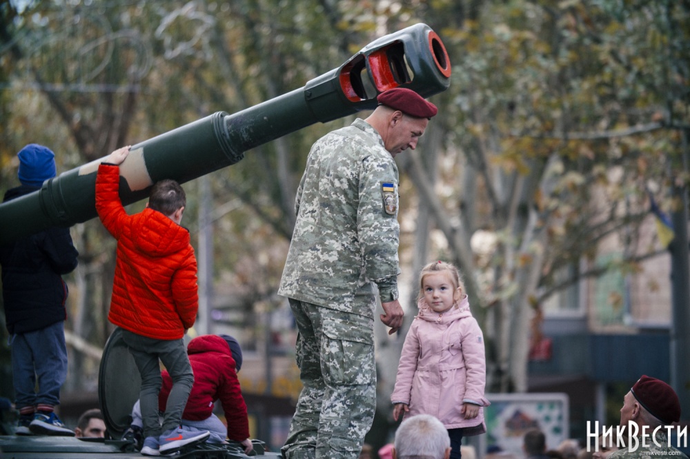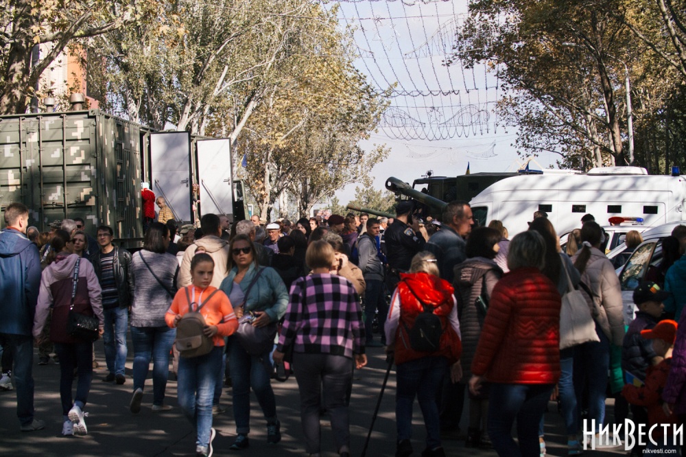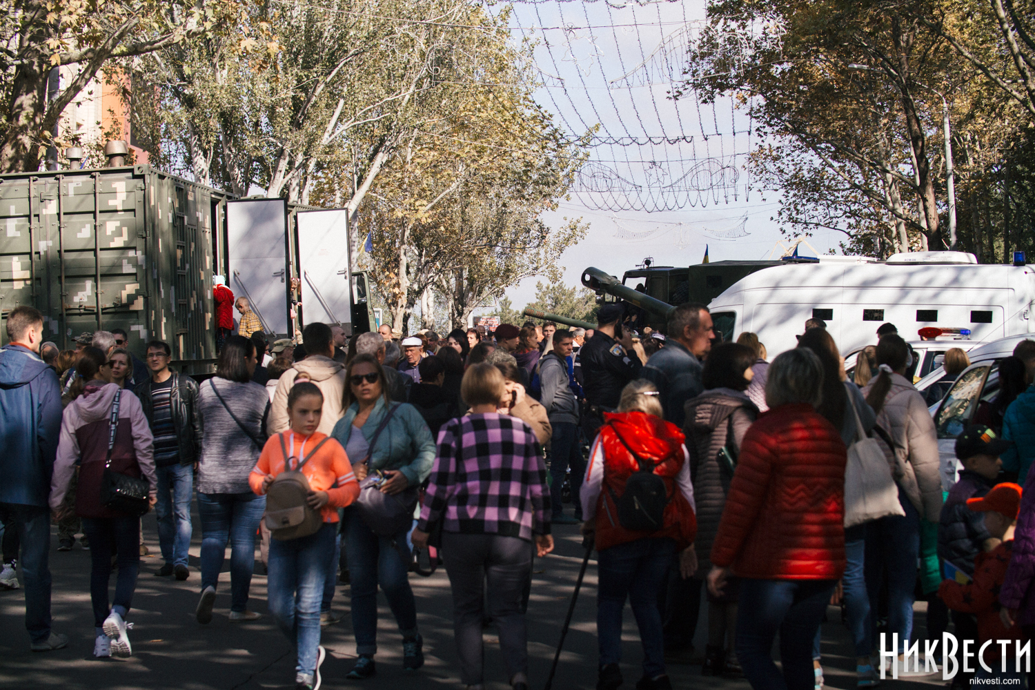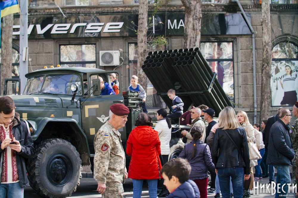 Стоит отметить, что в честь празднования на главной улице Николаева проходит выставка военной техники. На Соборной площади проходит ярмарка, а также спасатели организовали там квест-площадку.