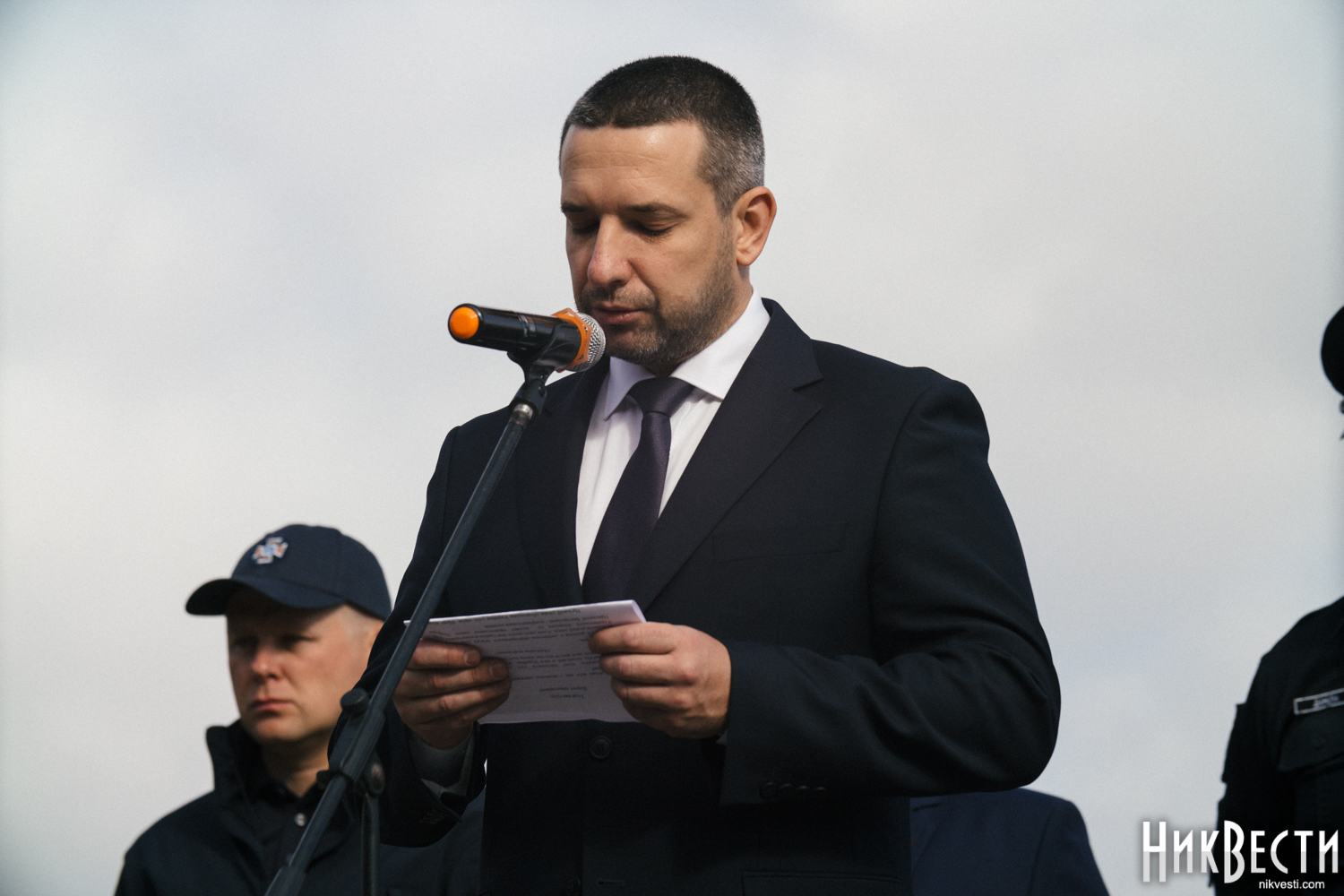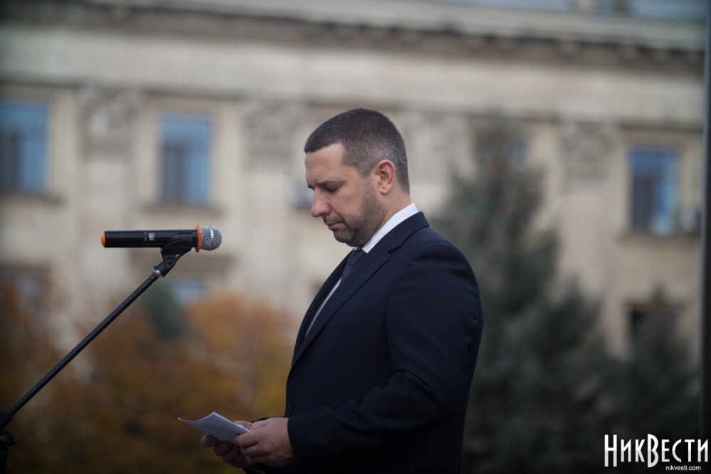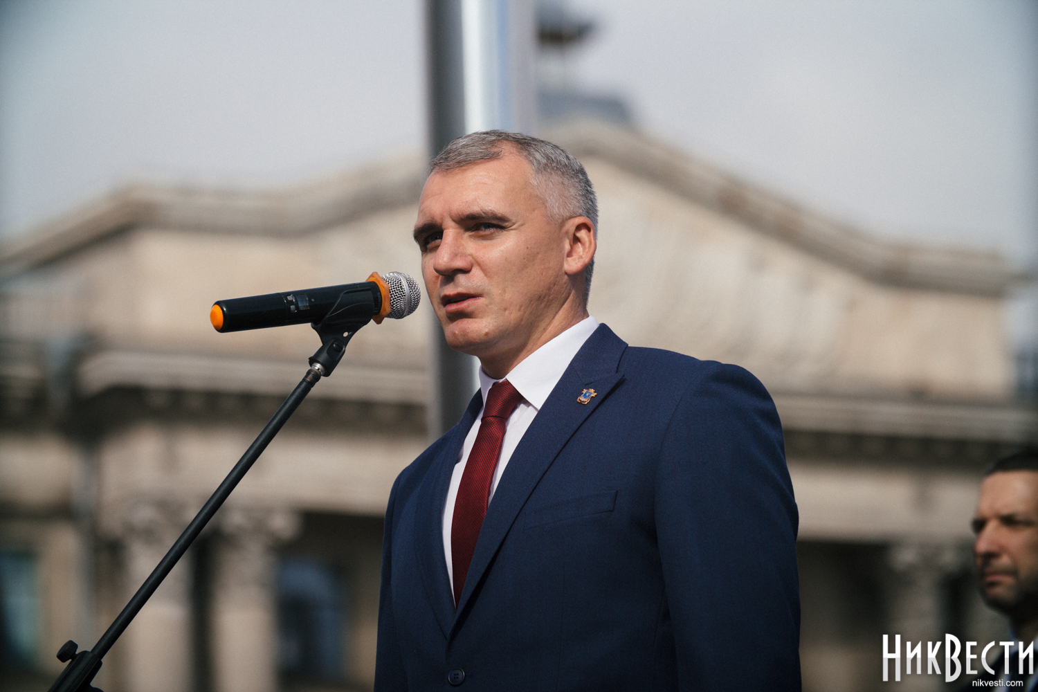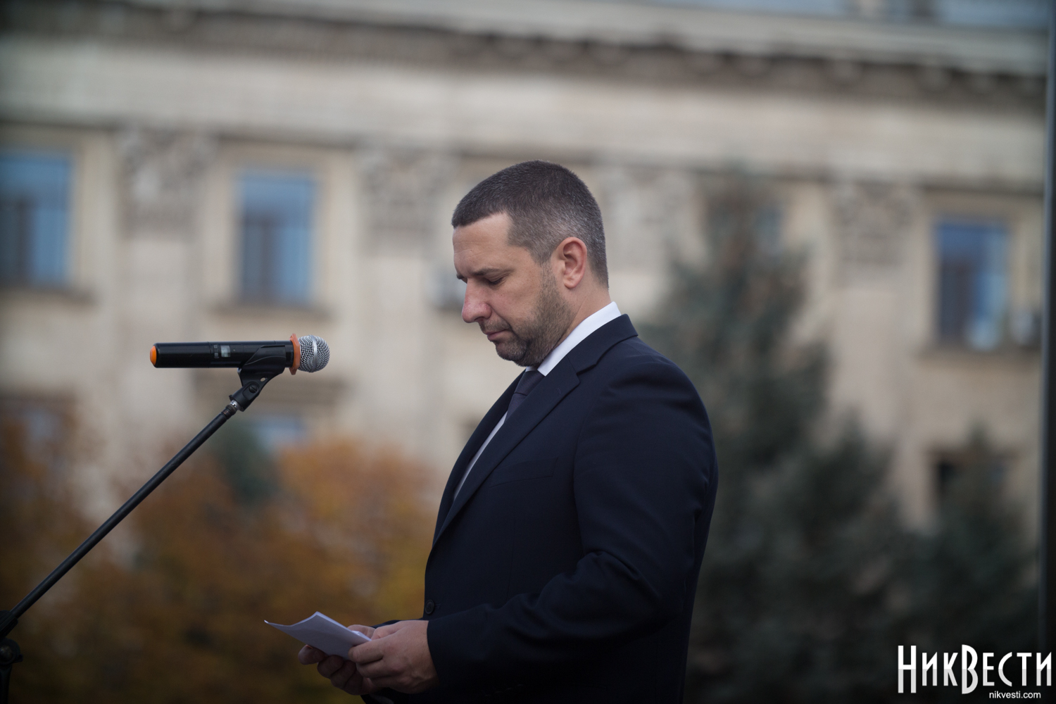 На площади прозвучал гимн Украины и состоялось поднятие флага, после чего перед собравшимися выступили глава Николаевской облгосадминистрации Александр Стадник и мэр Николаева Александр Сенкевич.