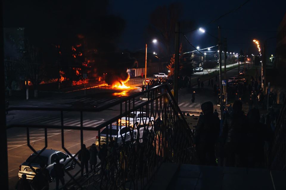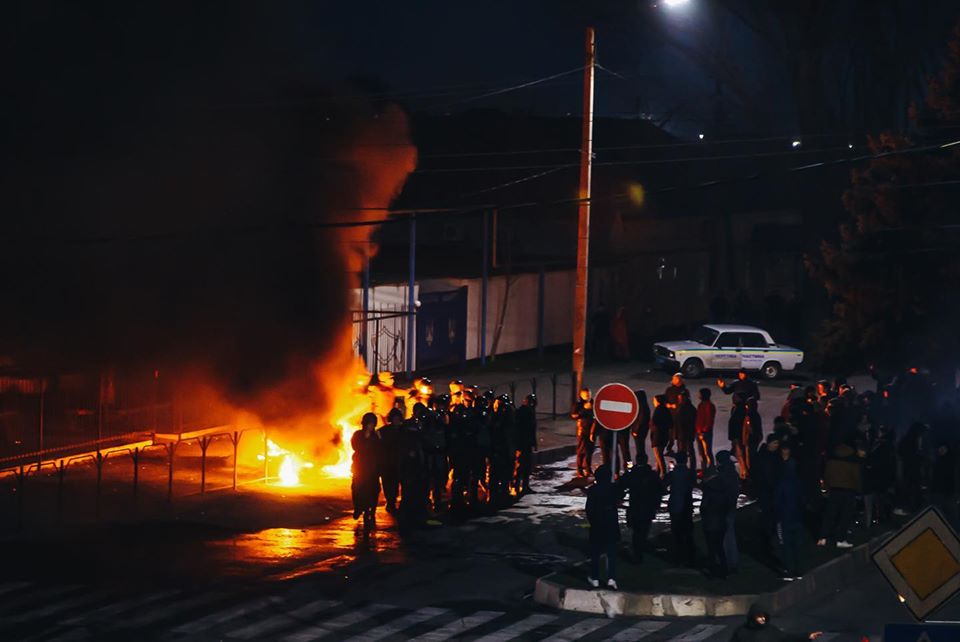 Вечером к зданию райотдела были подвезены шины, которые подожгли на глазах у всех собравшихся. Затем в здание полетела зеленка, яйца, петарды и фейерверки. единственное требование людей - чтобы правоохранители озвучили правду в деле об убийстве мужчины. К горящим покрышкам сотрудников Каховского РО УГСЧС не подпускали. Потушить огонь удалось лишь через несколько часов, когда силовики сделали заслон и пожарные смогли подступиться к месту огня.