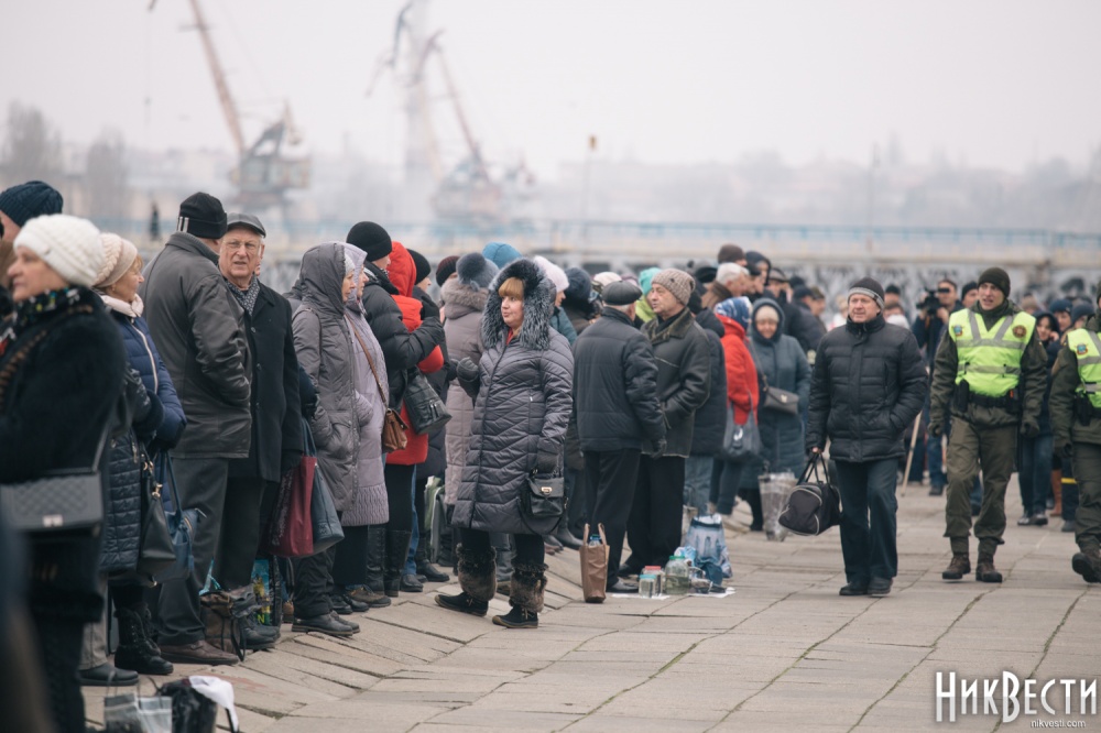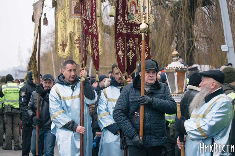 Жители Николаева также присоединились к празднованию Крещения. Обряд крещения проводился на заранее подготовленных площадках на нескольких локациях в городе: нижняя набережная бульвара имени Адмирала Макарова, набережная Яхт-клуба, пляж «Чайка» в парке «Богоявленский», а также на спортивной базе «Динамо» и береговой линии Намыв в районе бара «Ковбой».
