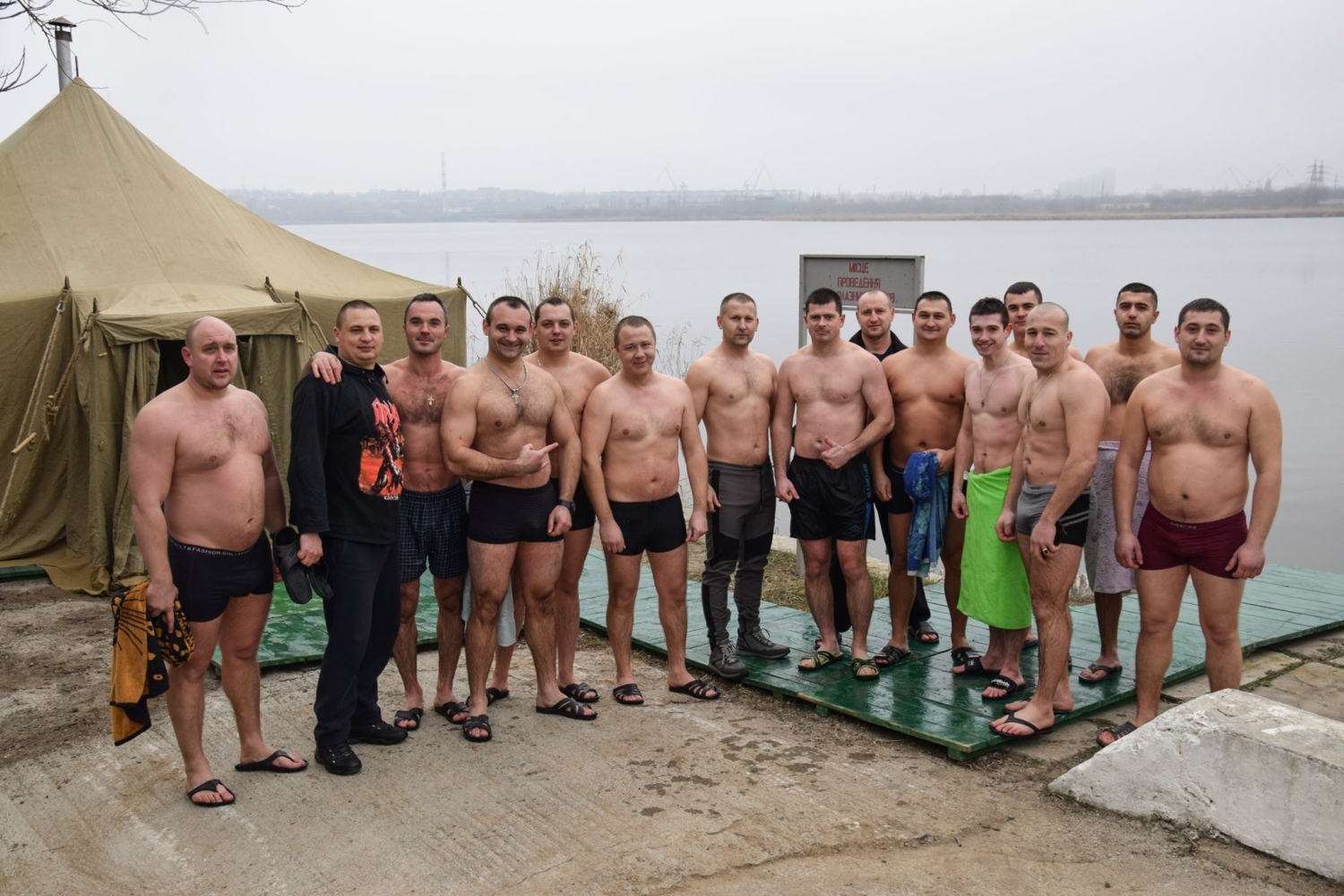Присоединились к массовым купаниям бойцы спецподразделения «КОРД» и роты полиции особого назначения Главного управления Национальной полиции в Николаевской области.