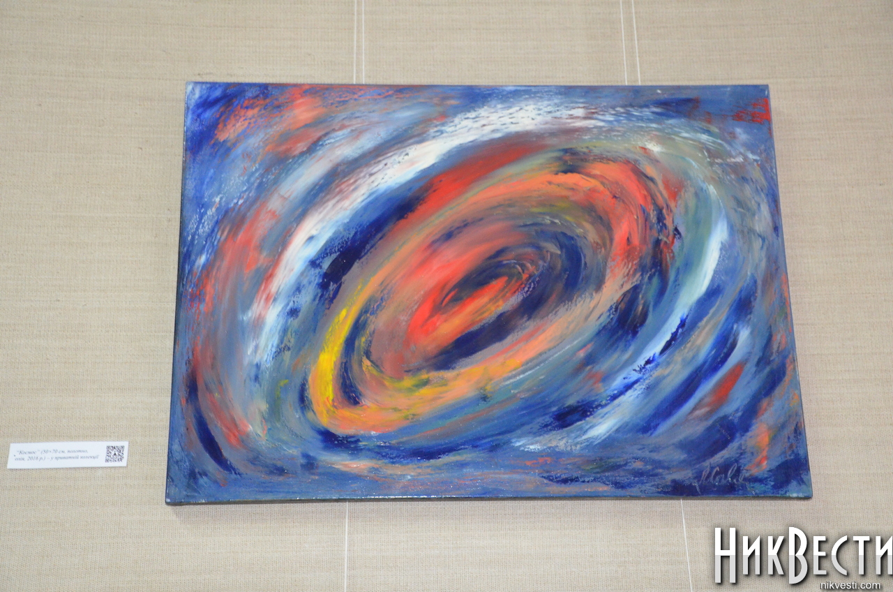 — Летом 2019 года картина Людмилы Савковой «Космос» брала участие в международном проекте на фестивале «Burning Man». Видео с картиной транслировалось на огромную пирамиду, в этом проекте принимали участие более сотни украинских художников и николаевцы сегодня могут увидеть эту картину. На выставке представлены 66 картин и это не все картины, некоторые картины находятся в частных коллекциях в других городах, а некоторые мы решили придержать до следующих выставок. Каждый найдет в этих картинах что-то свое, здесь есть загадочные пейзажи, невероятные абстракции, цветы. Это очень разноплановая выставка «Цените красоту жизни» это очень хороший лозунг, - сказал Юлий Нудельман.