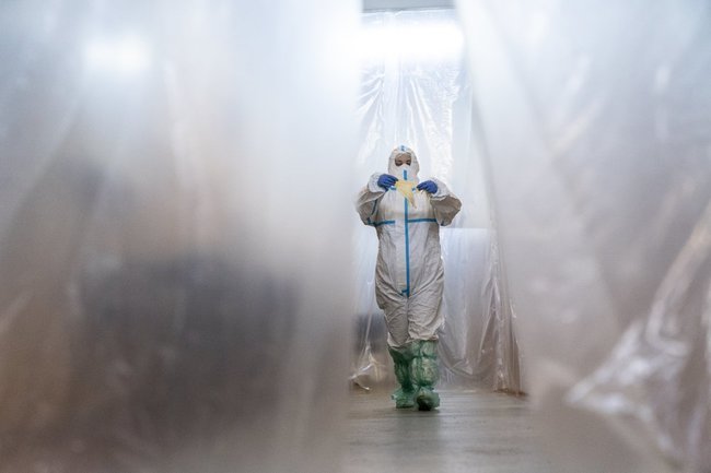 Как пишет издание, Олег Стецюк одет в желтый защитный костюм, который ему сшил друг, который шьет обувь. Он проводит вскрытие умерших от коронавируса на свежем воздухе, так как в больничном морге нет нормальной вентиляции и водоснабжения.