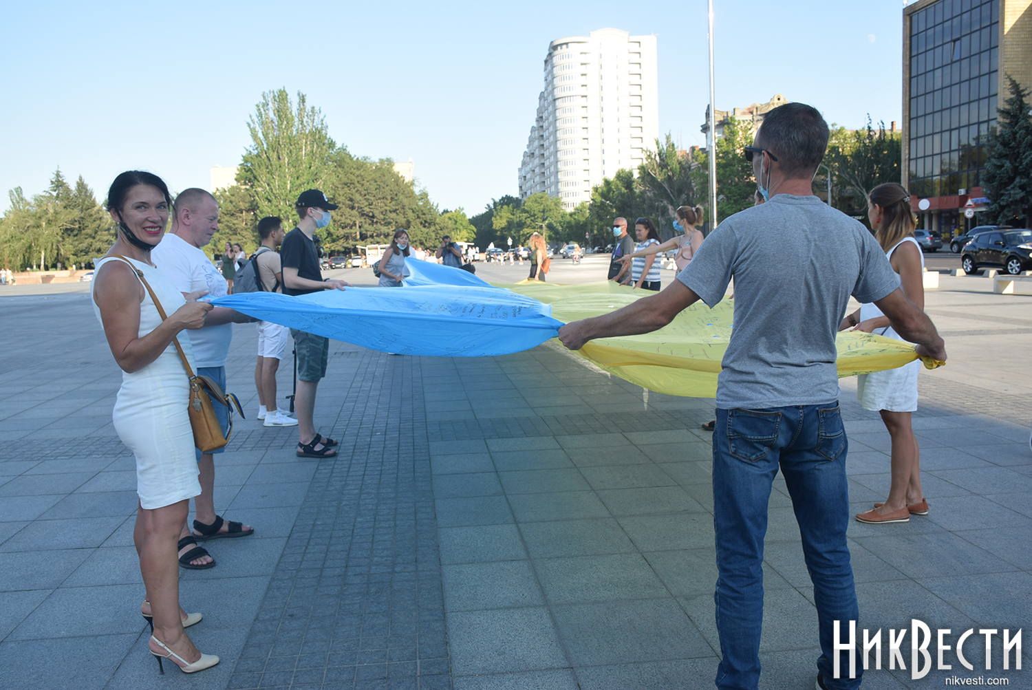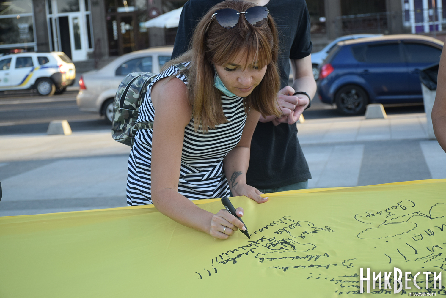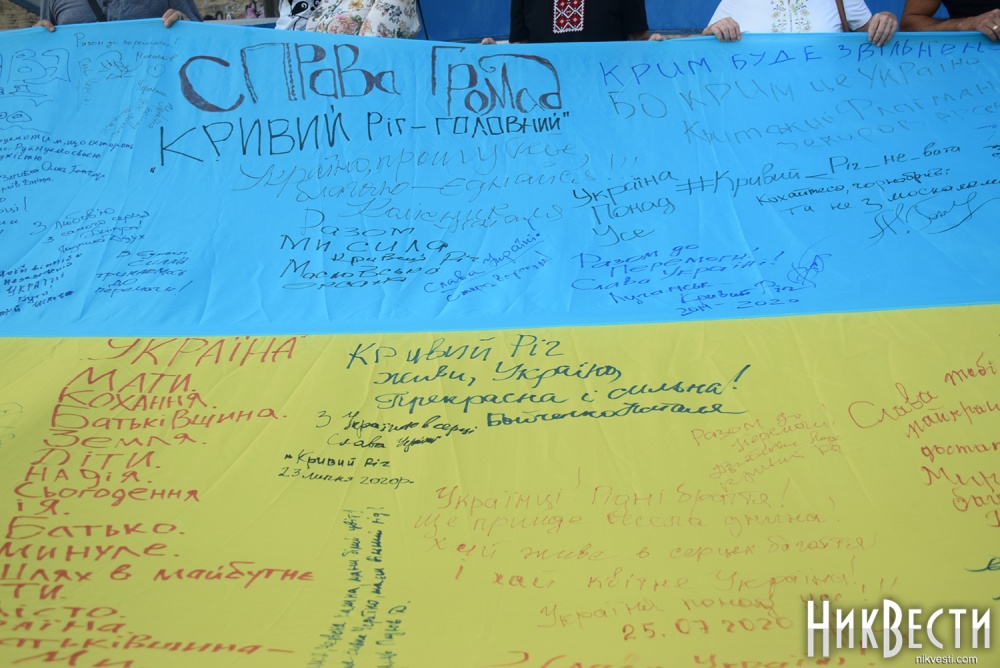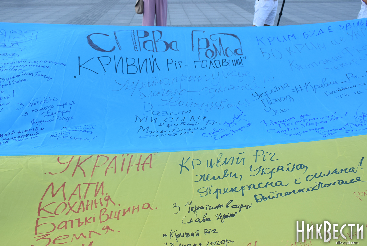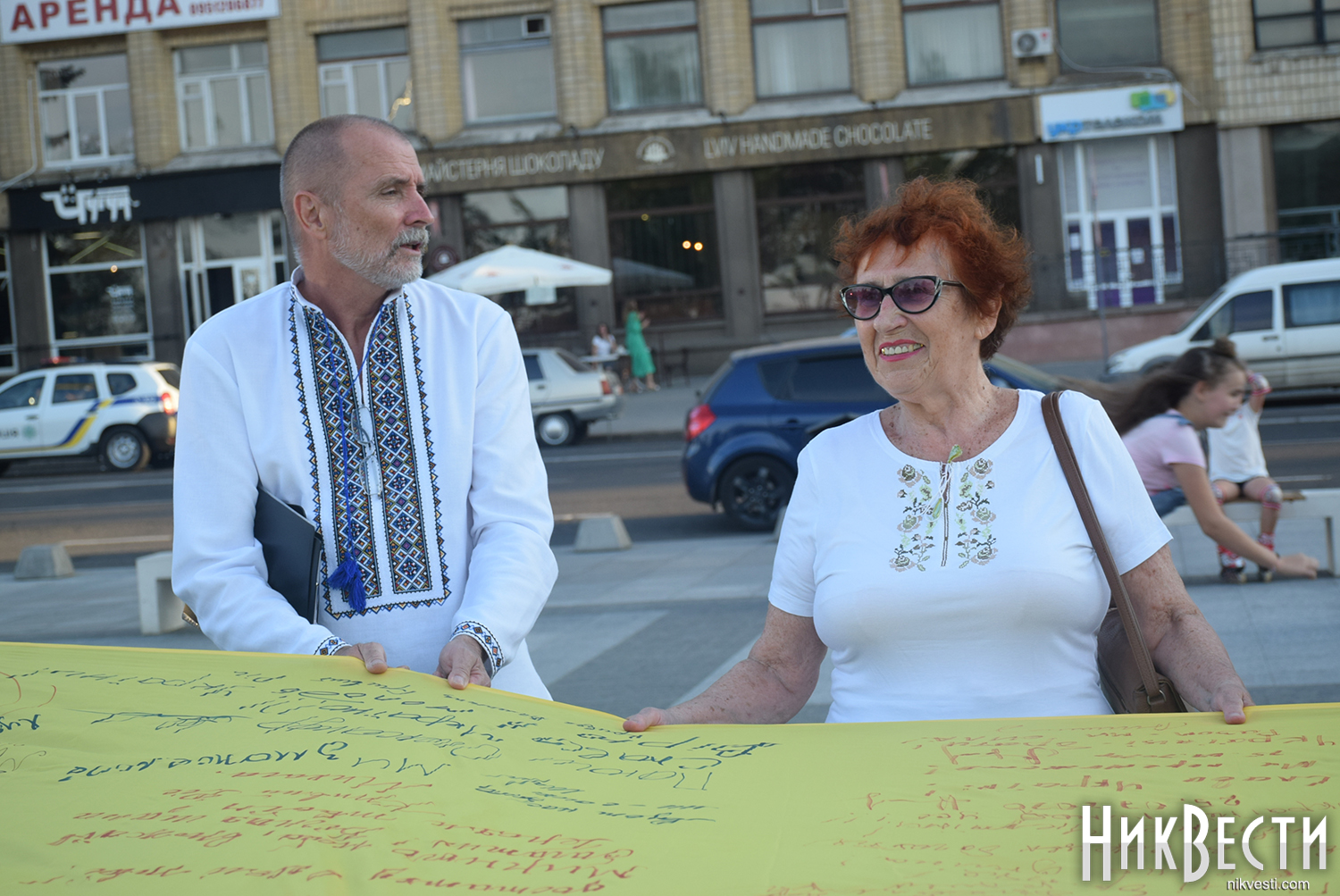 Сегодня, 30 июля, на Соборной площади в Николаеве в рамках всеукраинской акции прошла митинг «Флаг Единства», на котором николаевцы оставили на 20-метровом флаге Украины пожелания ко Дню Независимости.