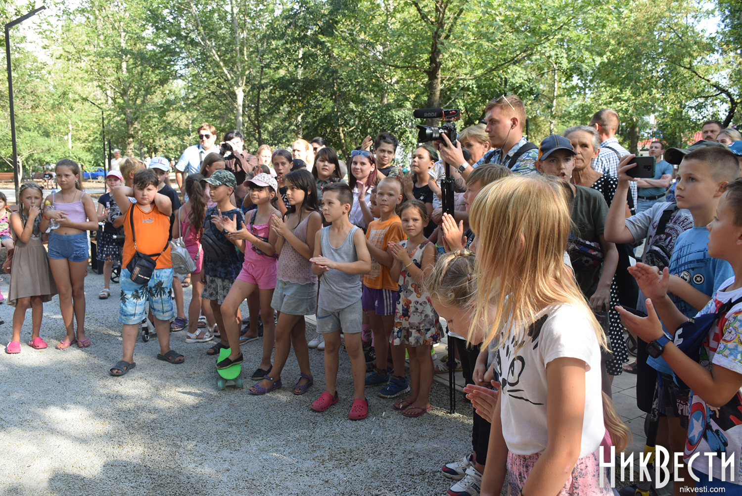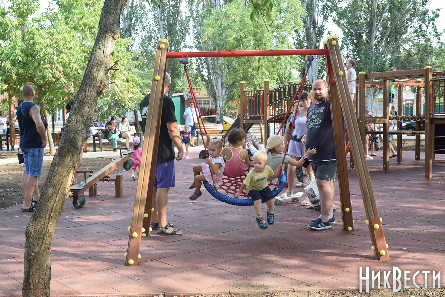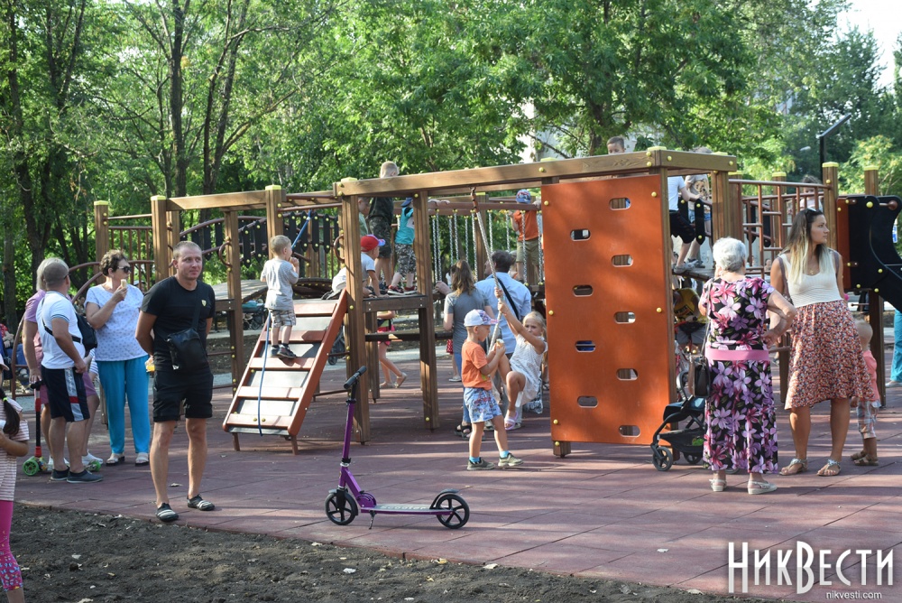 На открытии сквера присутствовали мэр города Александр Сенкевич, депутаты горсовета Наталья Горбенко и Анатолий Петров. Также на мероприятии собралось множество детей, которые начали активно испытывать новые качели и горки «на прочность».