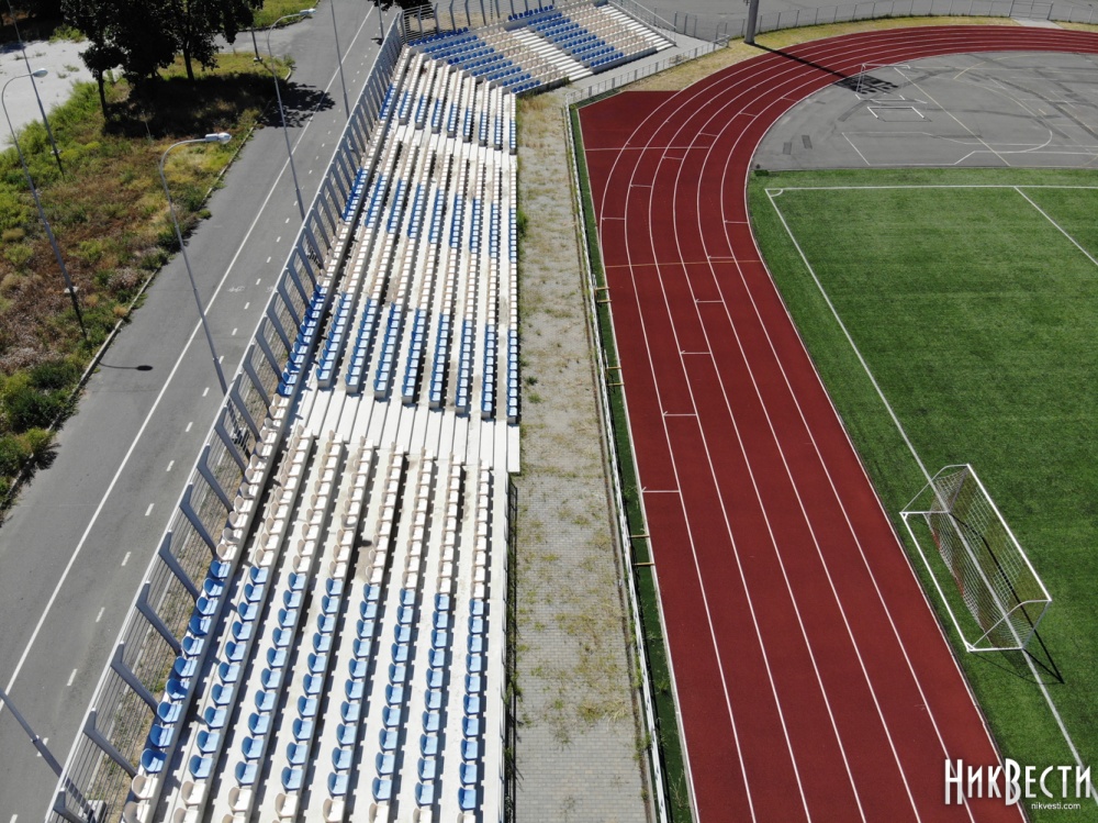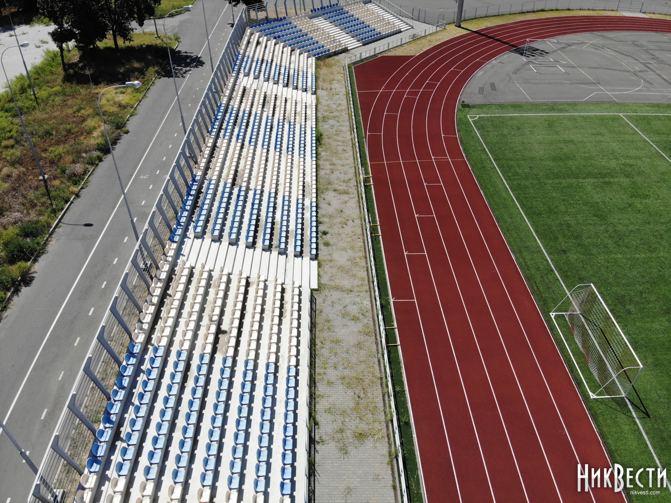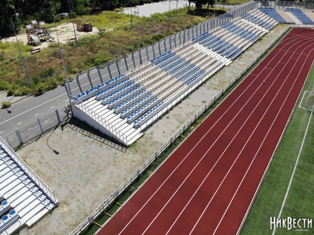 Стадион в парке Победы в Николаеве был построен и торжественно открыт еще осенью 2013 года. На открытие стадиона приехали тогда действующие министр образования и науки Украины Дмитрий Табачник, премьер-министр Украины Николай Азаров, глава Николаевской облгосадминистрации Николай Круглов, представители городской и областной властей, а также ректоры всех николаевских вузов.