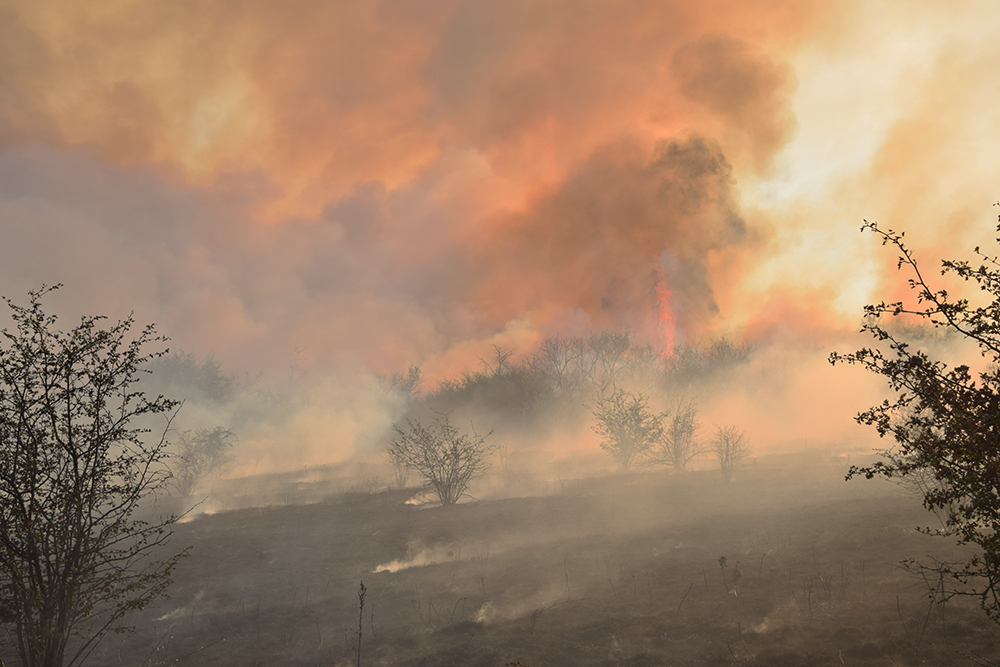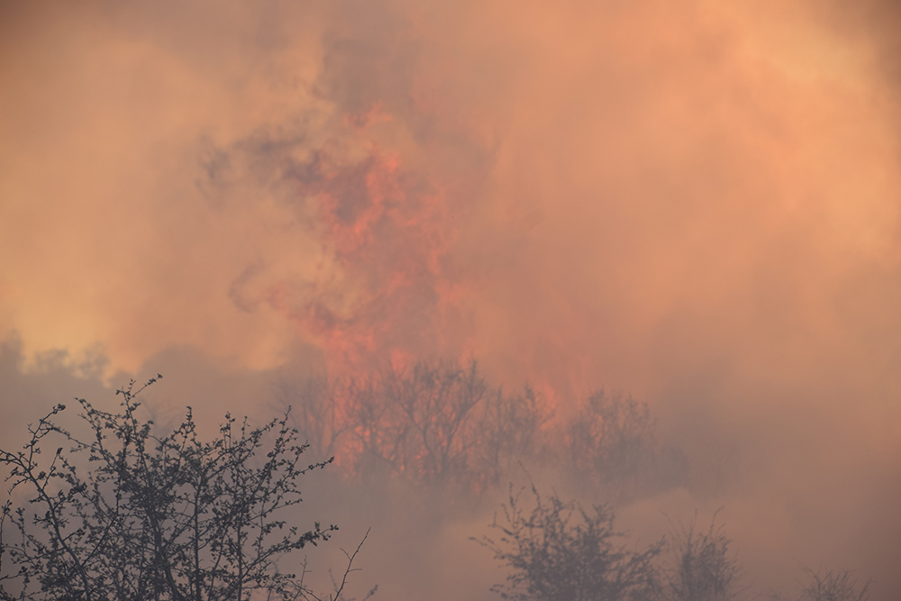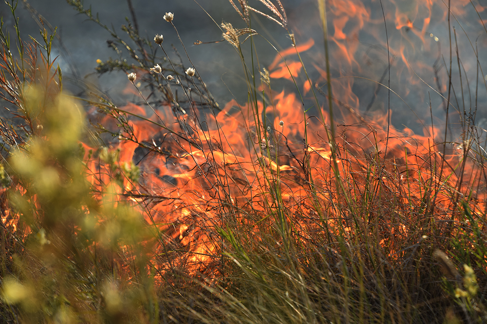 Под действием ветра огонь быстро распространялся по сухой траве, кустарникам и лиственному настилу.