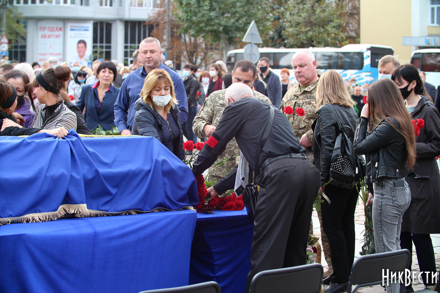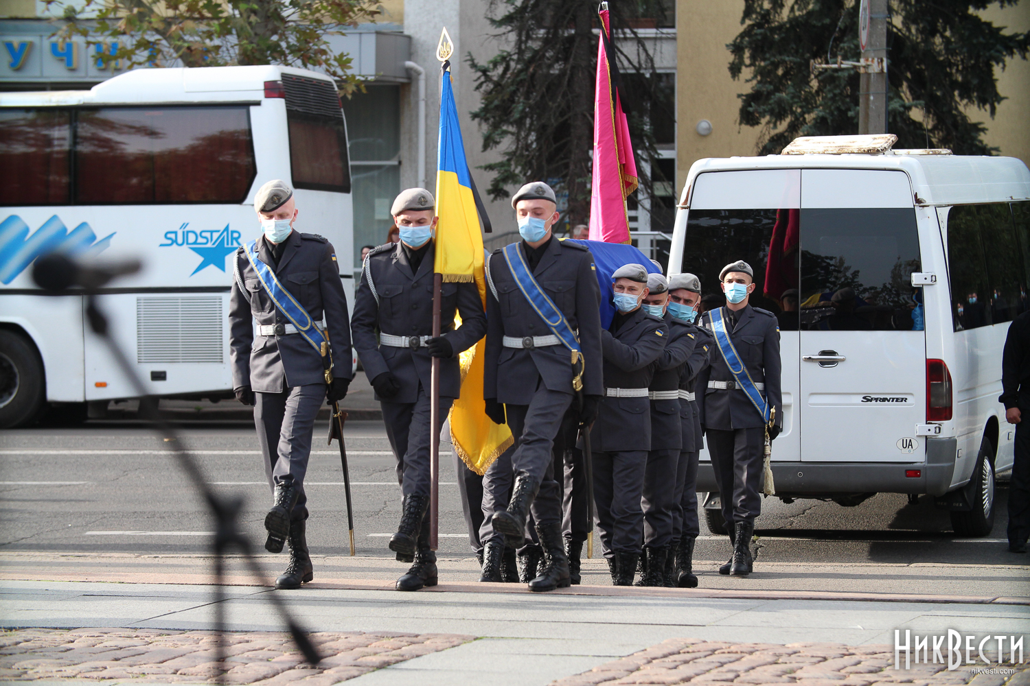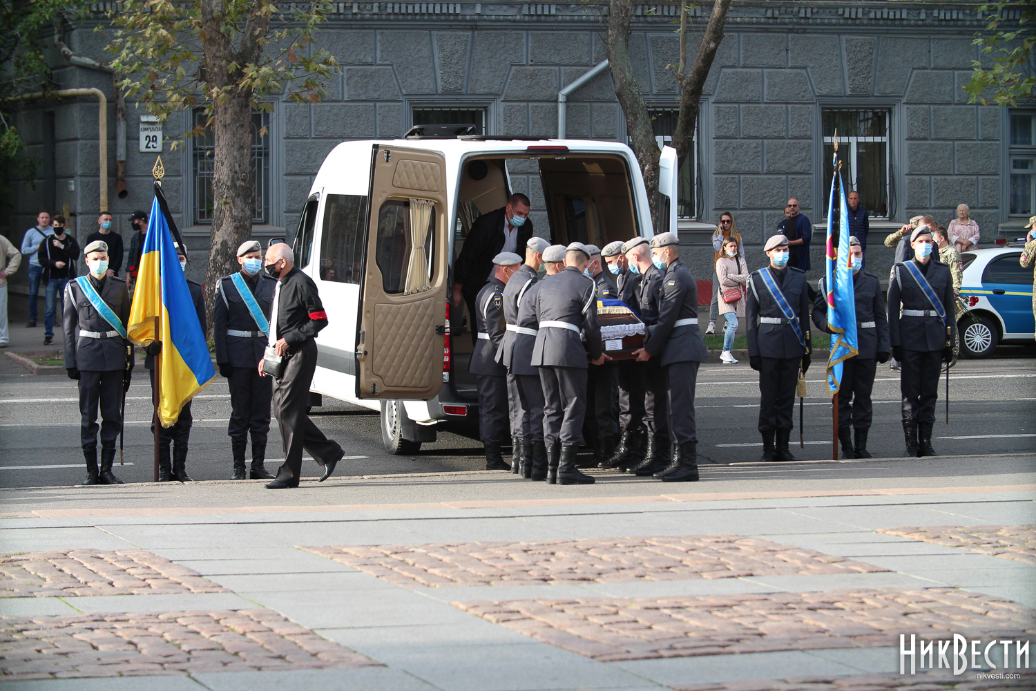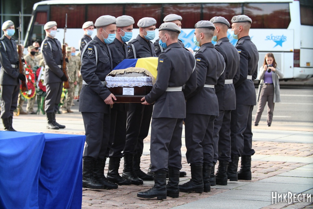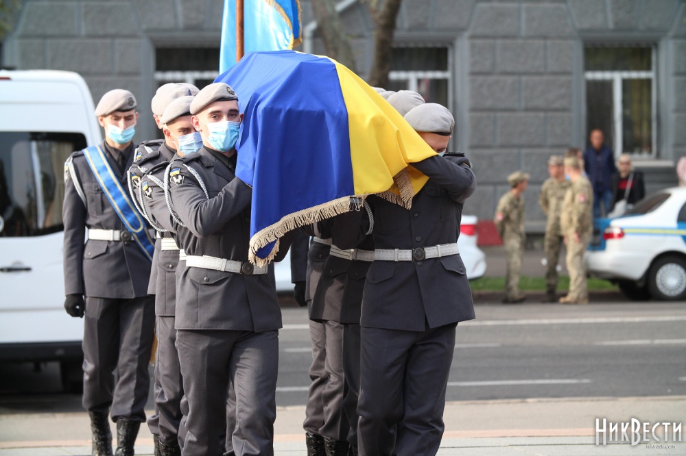 В среду, 7 октября, в Николаеве прошла церемония прощания с военнослужащими, курсантами Харьковского национального университета Воздушных сил имени Ивана Кожедуба, которые погибли в результате катастрофы самолета Ан-26 под Чугуевом.