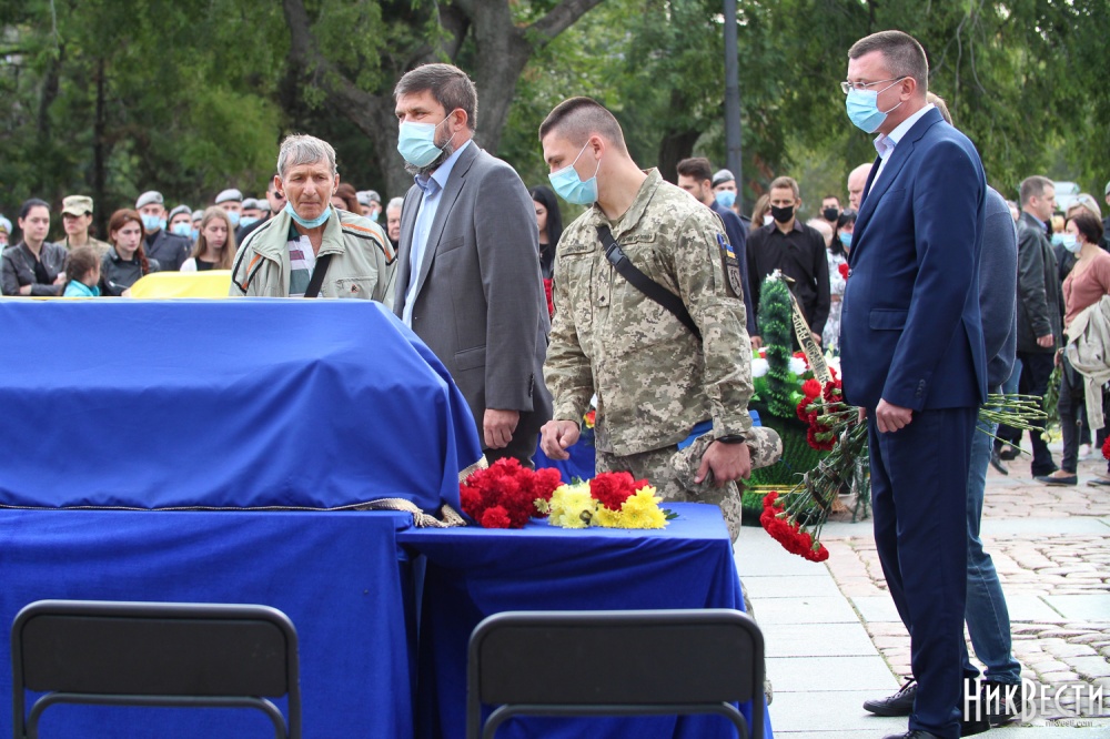 Траурная церемония прощания с курсантами Владимиром Олабиным и Андреем Померанцевым прошла у мемориала героям-ольшанцам по улице Адмиральской. Проститься с погибшими пришли родные и близкие, депутаты областного и городского советов, мэр Александр Сенкевич, временно исполняющая обязанности главы ОГА Татьяна Стахевич, глава городской организации партии «ОПЗЖ» Артем Ильюк, нардеп Юрий Загородний, военнослужащие, а также простые жители города.