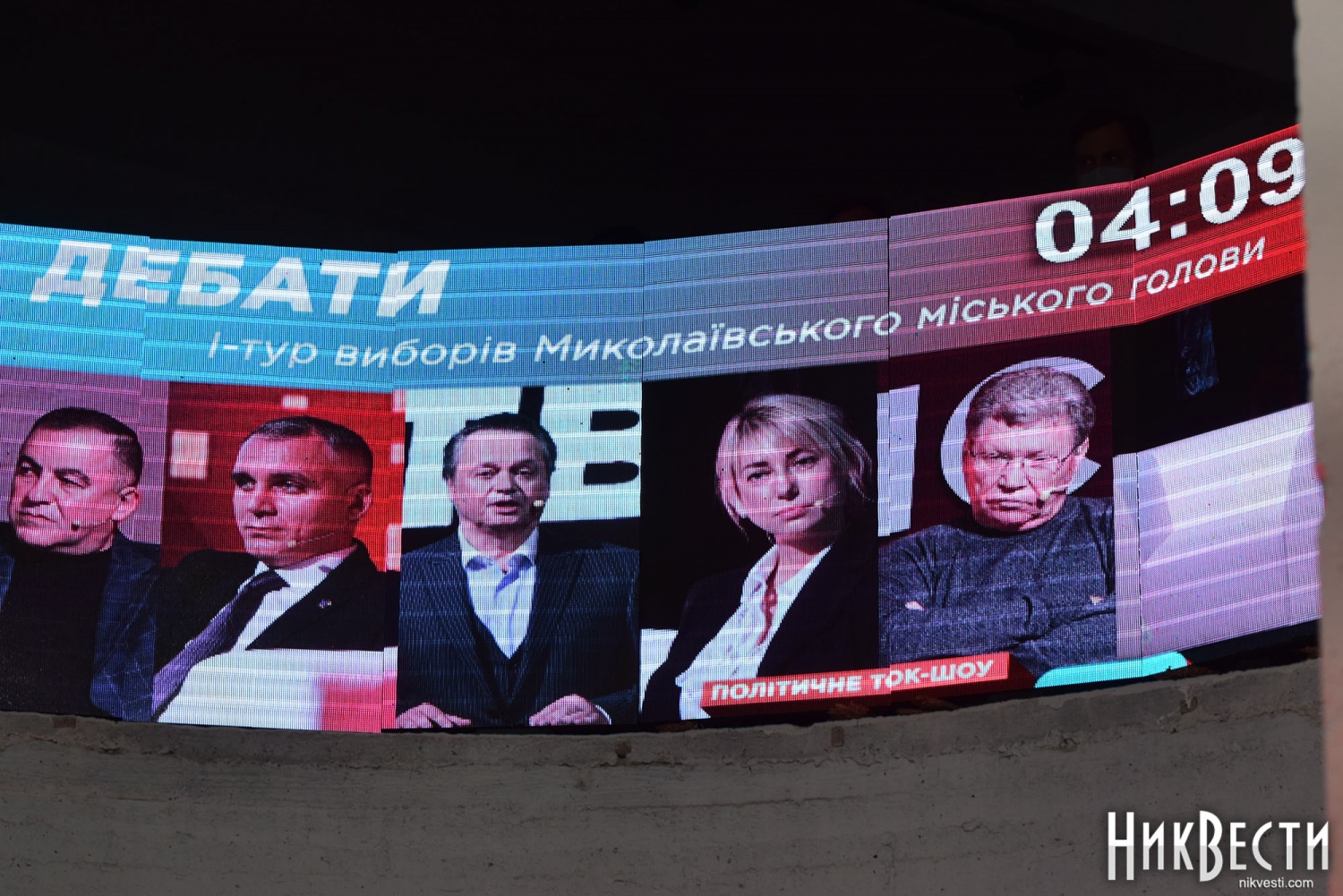 Участие в дебатах кандидатов на пост мэра приняли Николай Круглов, (партия «Наш край»), Александр Садыков (партия «Миколаївці»), Александр Сенкевич (партия «Пропозиція»), Юрий Гранатуров (партия «За майбутнє») и Татьяна Домбровская (партия «Слуга народа»).