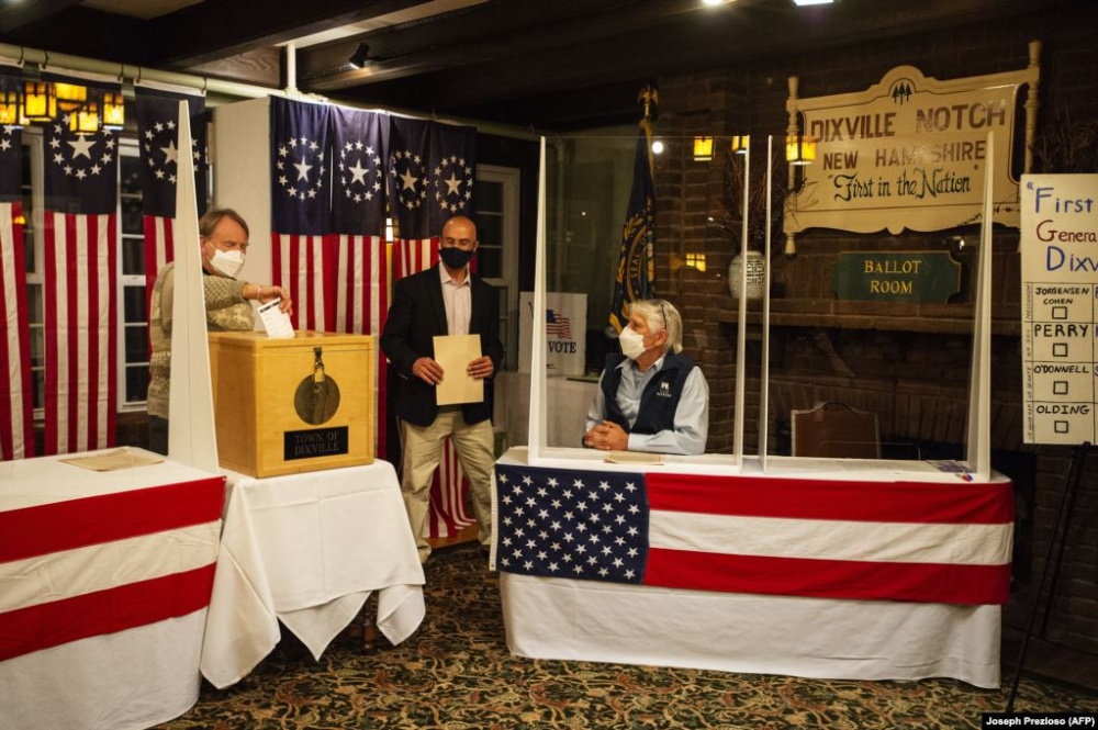 Первые бюллетени на президентских выборах в США попали в урны для голосования в полночь, Диксвилл-Нотч, штат Нью-Гемпшир, 3 ноября 2020
