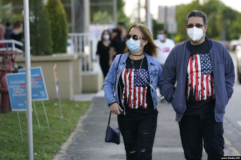 Лейди Перес (слева) и Едилио Галлардо прибыли, чтобы проголосовать на избирательном участке в библиотеке Джона Ф. Кеннеди в городе Хайалиа, ФлоридаНапомним, клиент букмекерской конторы Betfair в Великобритании поставил 1 млн фунтов ($1,29 млн) на победу кандидата от Демократической партии Джо Байдена на выборах президента США, которые состоятся во вторник.
