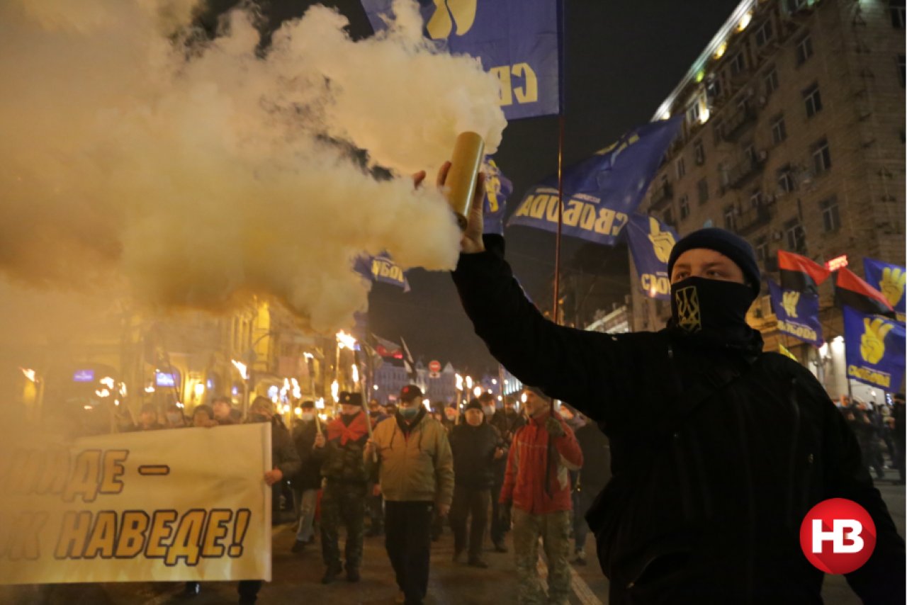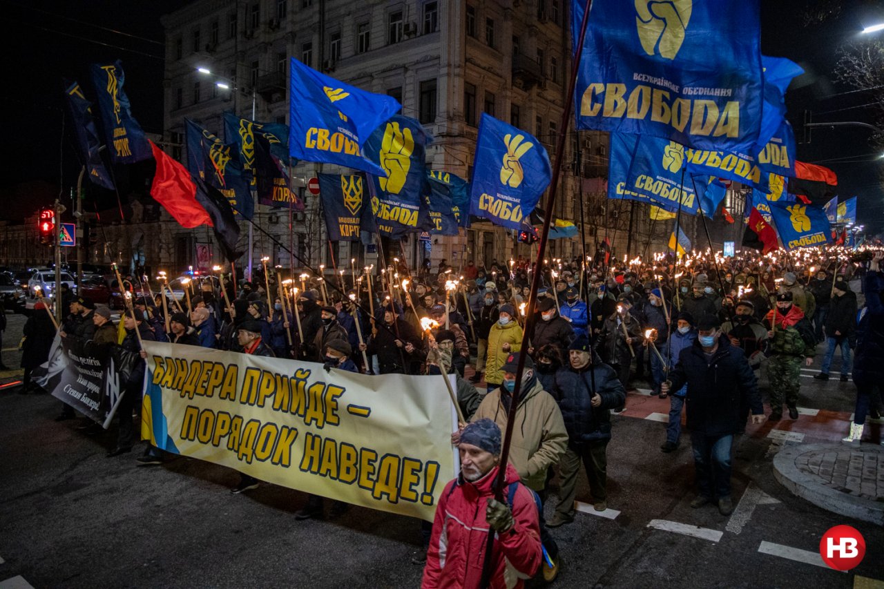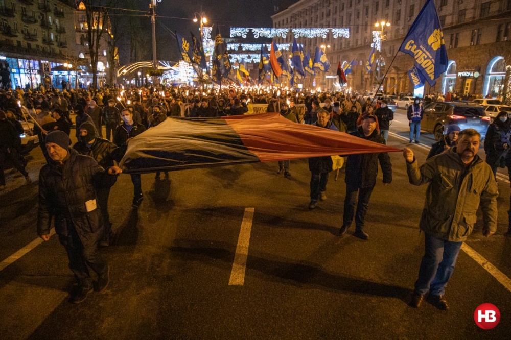 В Киеве 1 января состоялось традиционное факельное шествие по случаю 112-й годовщины со дня рождения лидера и идеолога Организации украинских националистов Степана Бандеры.