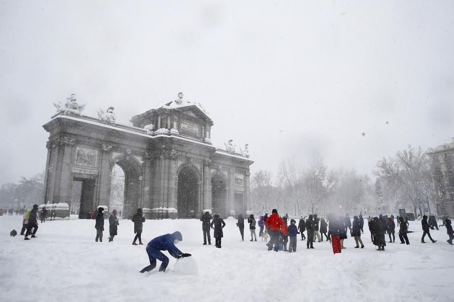 Из-за снежного бурана Филомена, который начался в пятницу, 10 испанских провинций объявили красный уровень тревоги, движение в Мадриде было парализовано, а международный аэропорт Барахас пришлось закрыть с вечера пятницы до вечера субботы. Поезда также остановились.