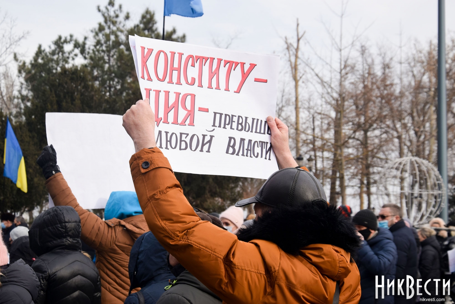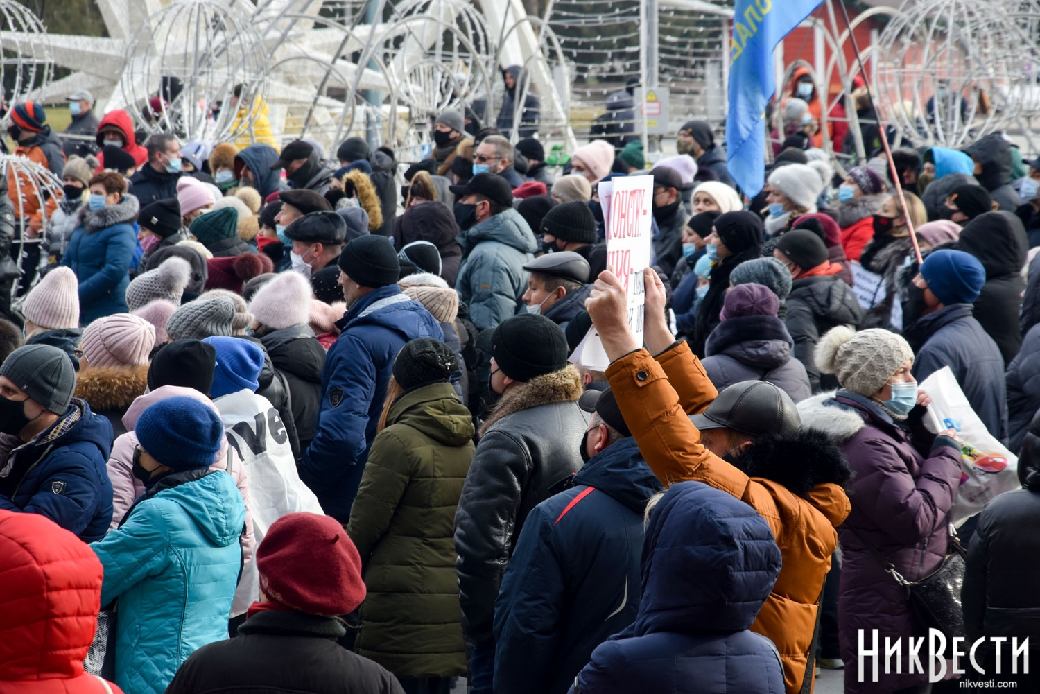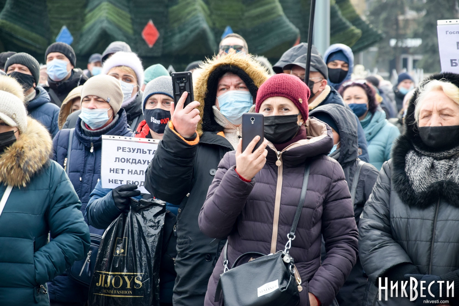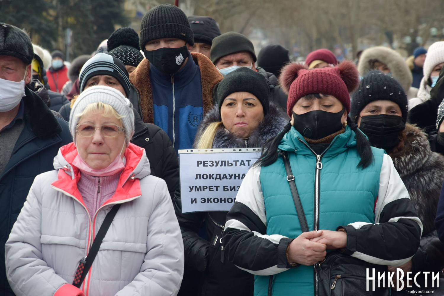 В среду, 6 января, под стенами Николаевской облгосадминистрации собралось около 200 человек, которые представились физическими лицами-предпринимателями, они требовали от главы облгосадминистрации Виталия Кима передать Кабмину и президенту их требование об отмене усиления карантинных ограничений с 8 января.