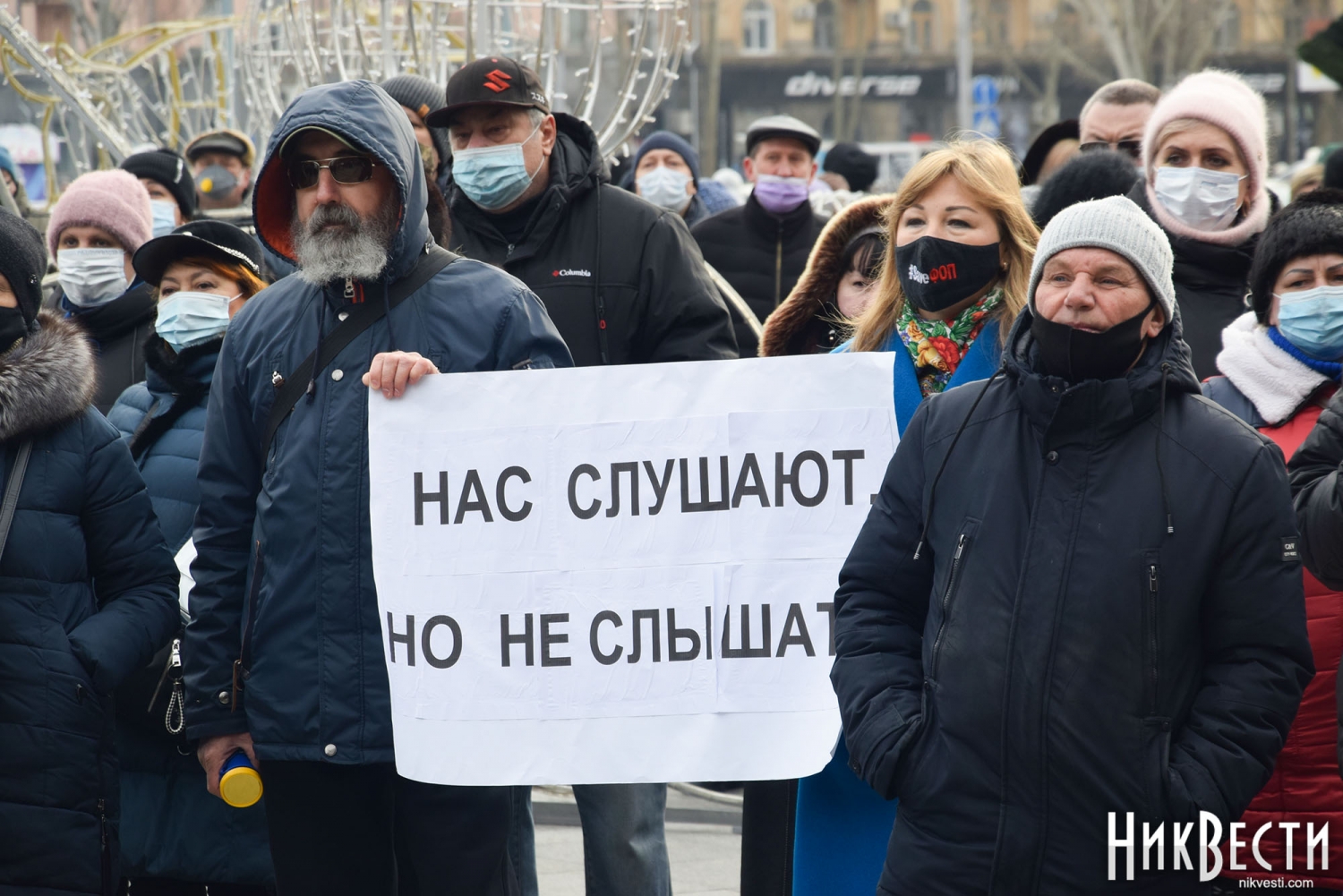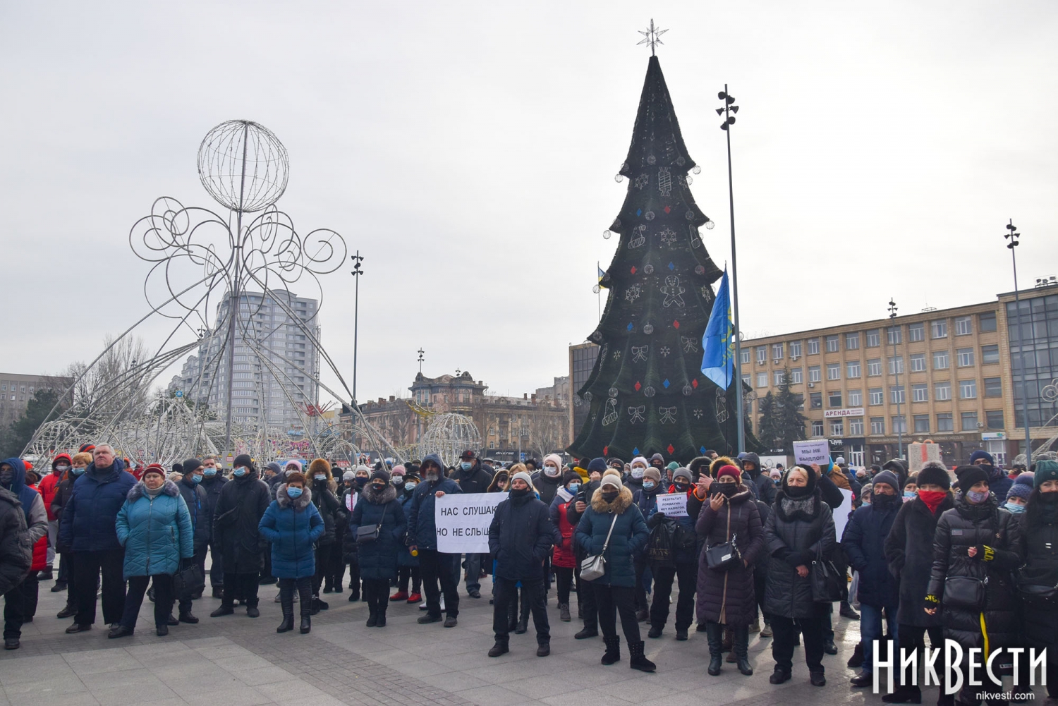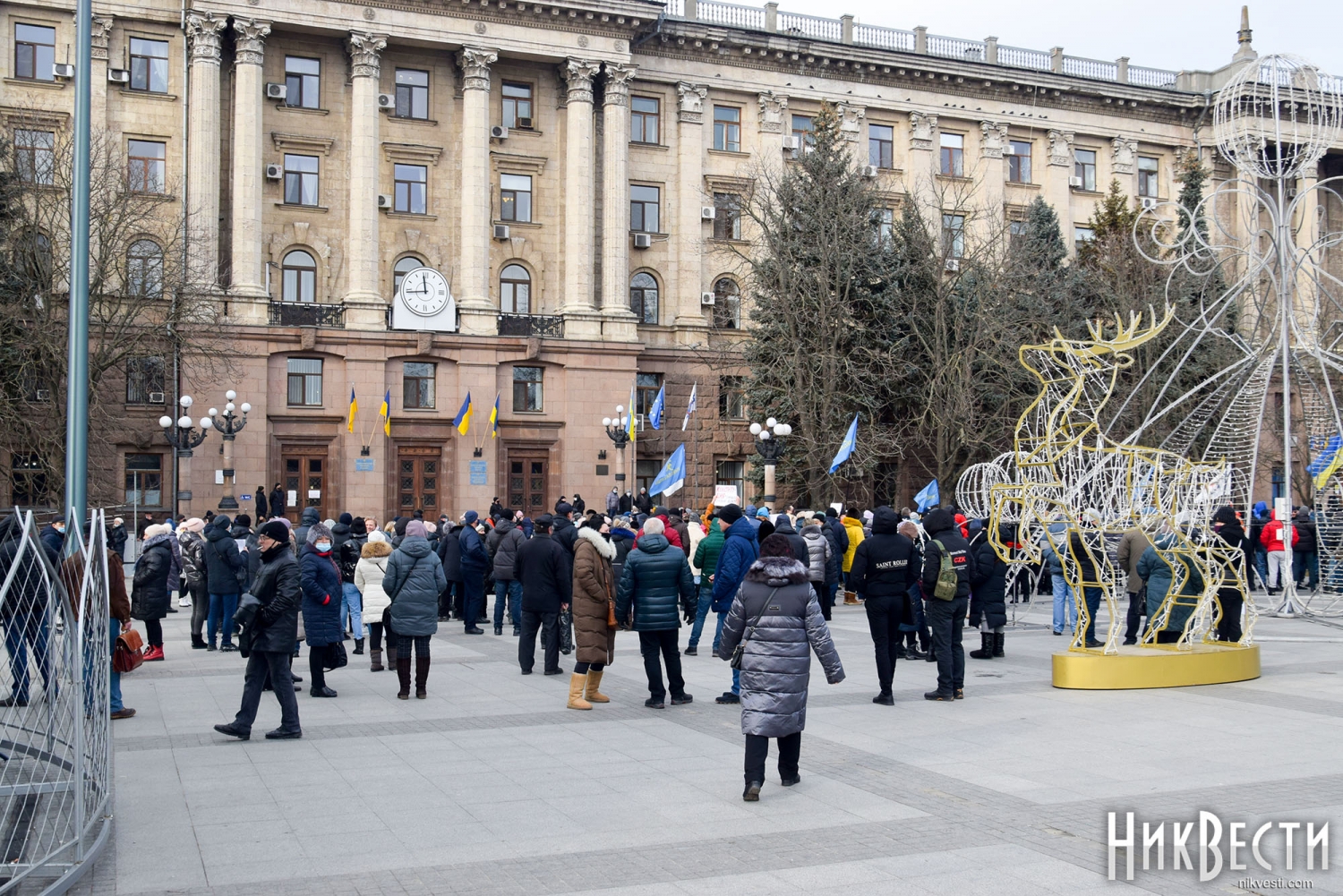 Во вторник, 12 января, в Николаеве на площади перед городским советом началась акция предпринимателей против локдауна и ужесточения карантинных ограничений.