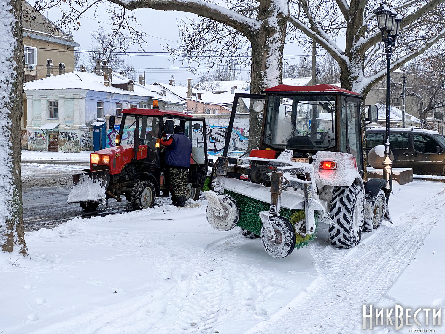 С раннего утра коммунальные службы приступили в расчистке улиц города от снега, сообщает корреспондент НикВести.
