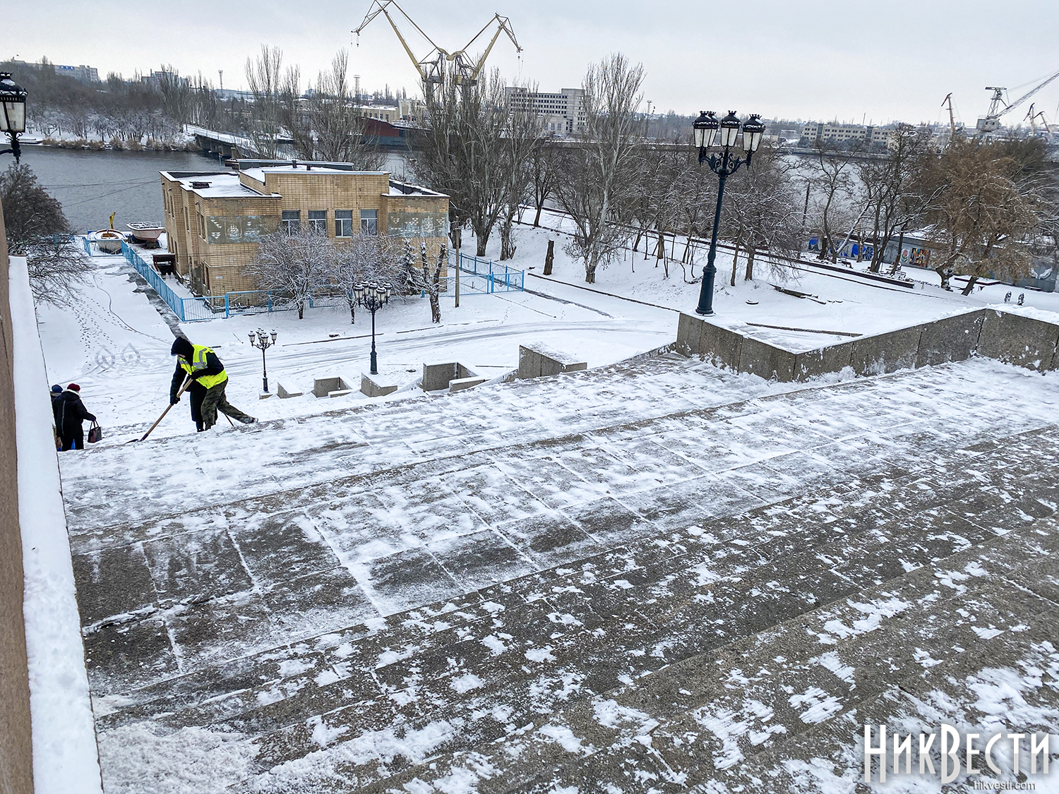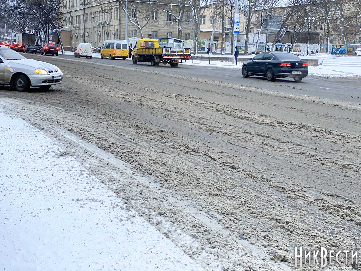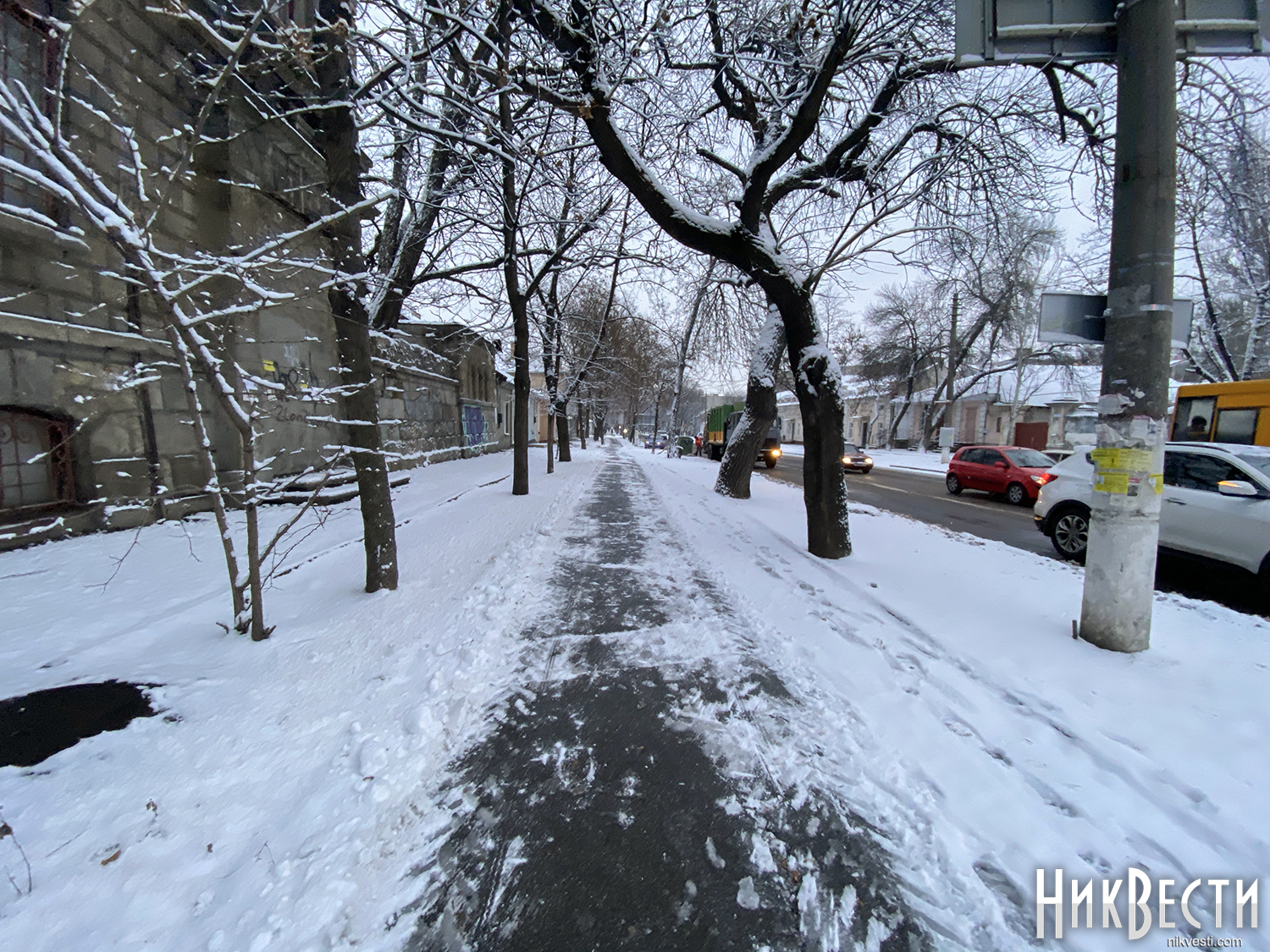 Учитывая, что температура в городе сохраняется до 2 градусов с отметкой минус, снег на улицах Николаева не тает.