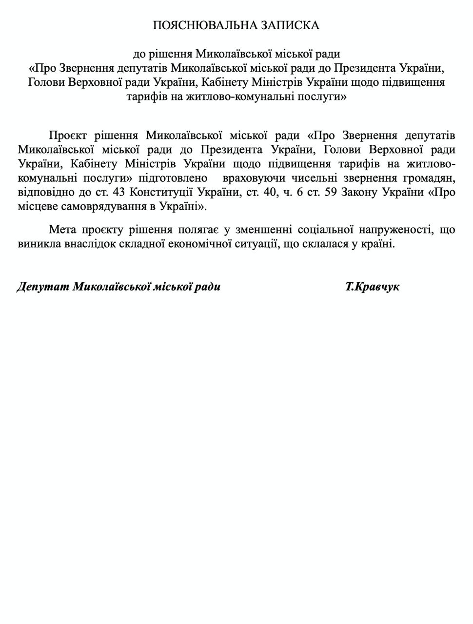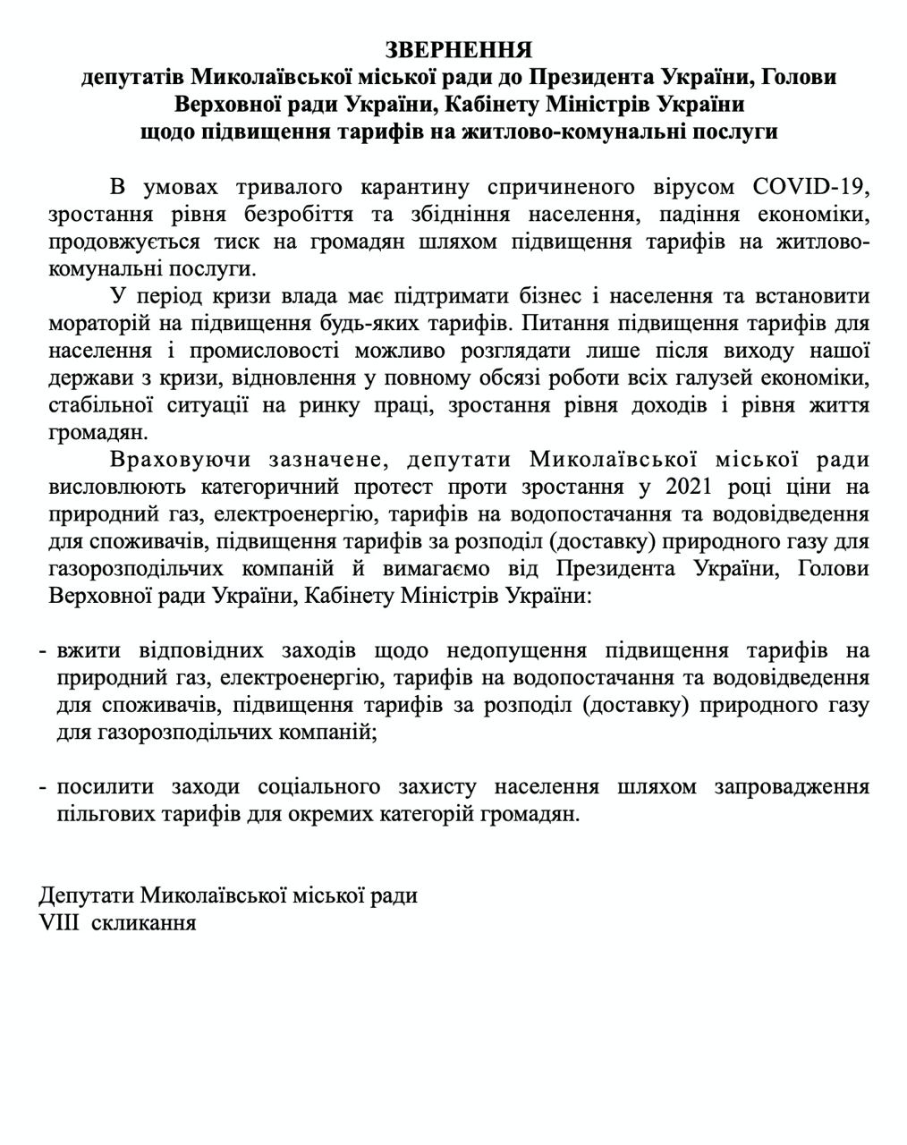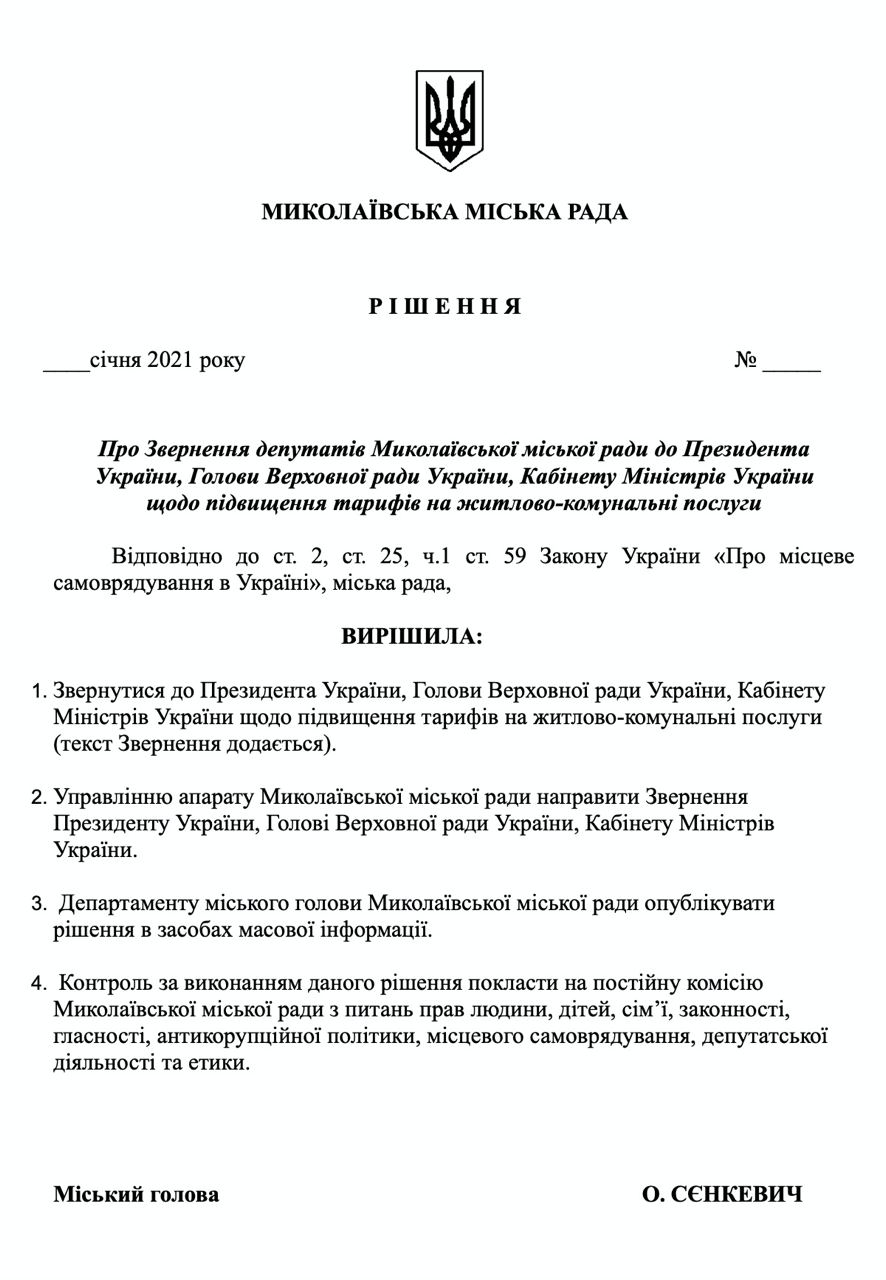 Напомним, что 12 января члены планово-бюджетной комиссии горсовета Николаева согласовали проект решения сессии об обращении к президенту Украины, к Верховной Раде Украины и Кабмину с просьбой пересмотреть тарифы для населения на газ (включая транспортировку) и электроэнергию в сторону их уменьшения.