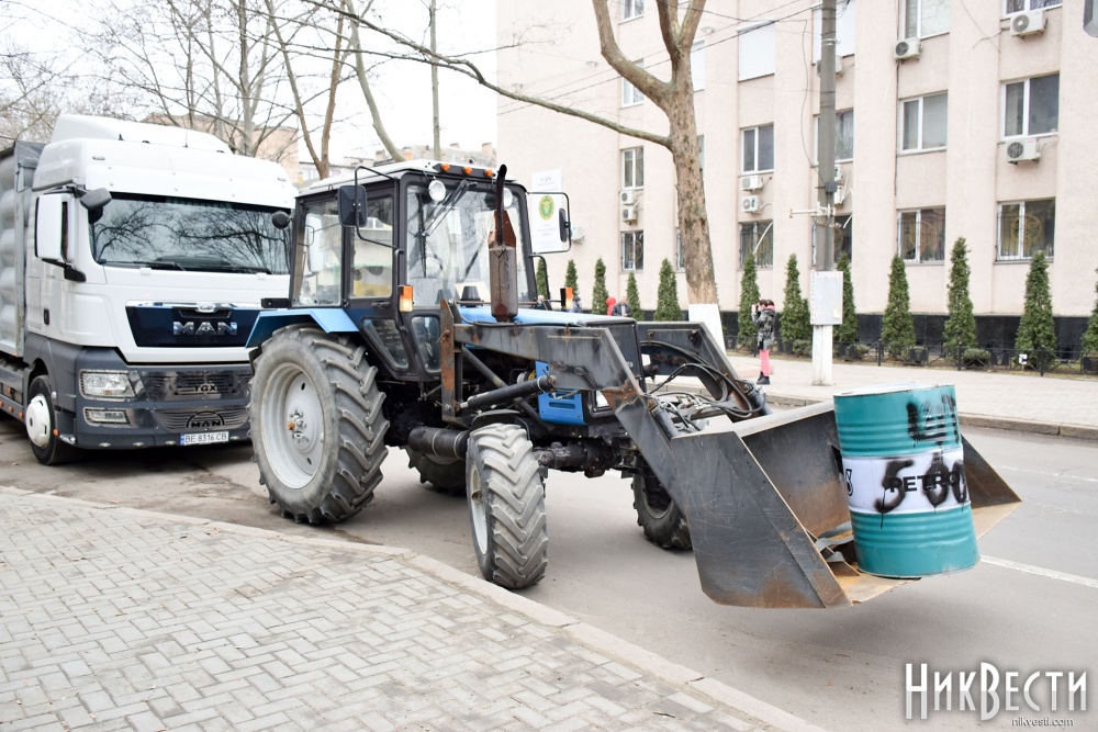 Сегодня, 24 февраля в Николаеве возле Главного управления Государственной налоговой службы представители агробизнеса, которые выступают против больших штрафов за нарушение новых условий хранения топлива и необходимость получения специальных лицензий, устроили митинг.