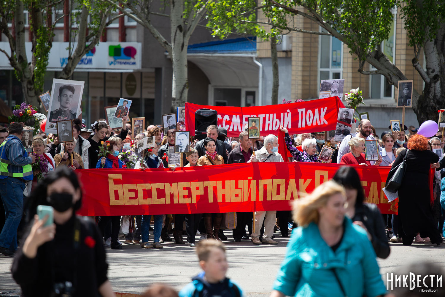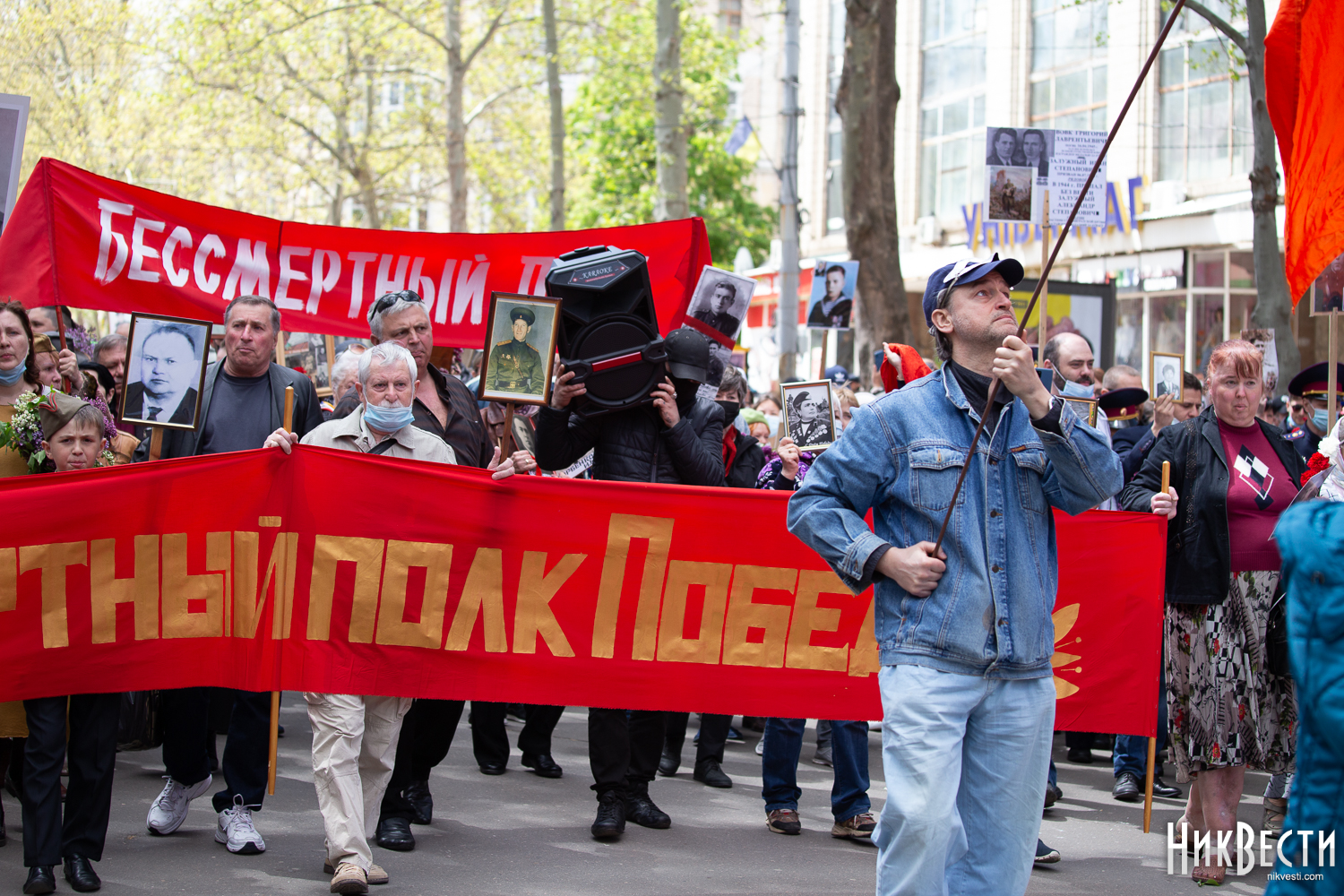 В Николаеве 9 мая прошел марш так называемого «Бессмертного полка» - большинство участников были без медицинских масок.