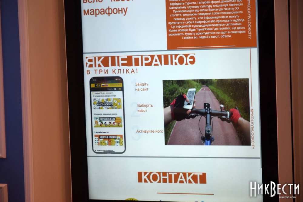 Также Геннадий Евтушенко рассказал о велоквесте «Археологический Николаев» по маршруту «Коблево — Николаев — Лупарево — Хабловский маяк». Он разделен на 5 частей и соответственно 5 квестов. Можно «проходить» как весь маршрут, так и его части. Проект планируют презентовать уже осенью.