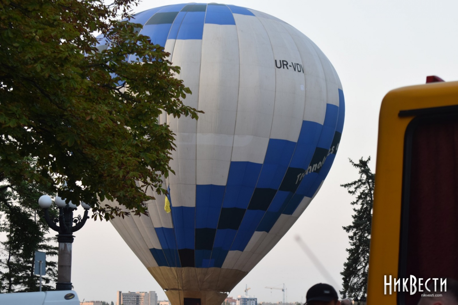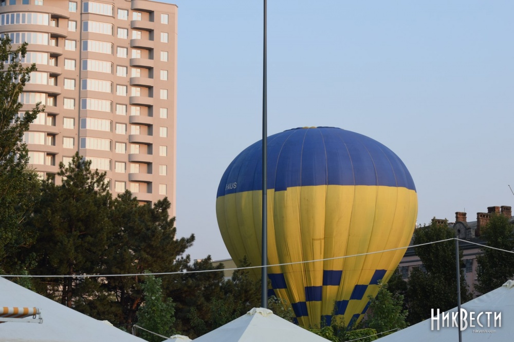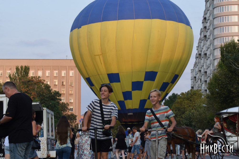 Уже днем на главной площади города установили фуд-корты и большую концертную сцену с тремя экранами. Кроме того, вечером на улицах Адмиральской и Набережной появились два огромных воздушных шара — желто-синий и бело-синий.