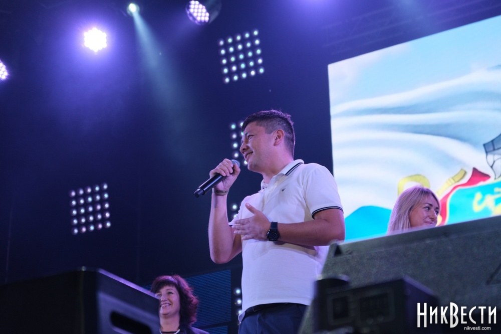 — Сегодня говорил, что у Николаева есть свой характер. У нас самые суровые парни, у нас самые красивые девушки, у нас даже мэр в цепи стоит на сцене (цепь с медальоном, знак высшего должностного лица города, — прим.). Мы самые лучшие, именно мы делаем Николаев таким, каким его видят другие. Я считаю, что этот день должен быть для всех показательным. Я очень прошу всех — любите ваш город, получайте удовольствие от того, как вы живете, — сказал Виталий Ким.