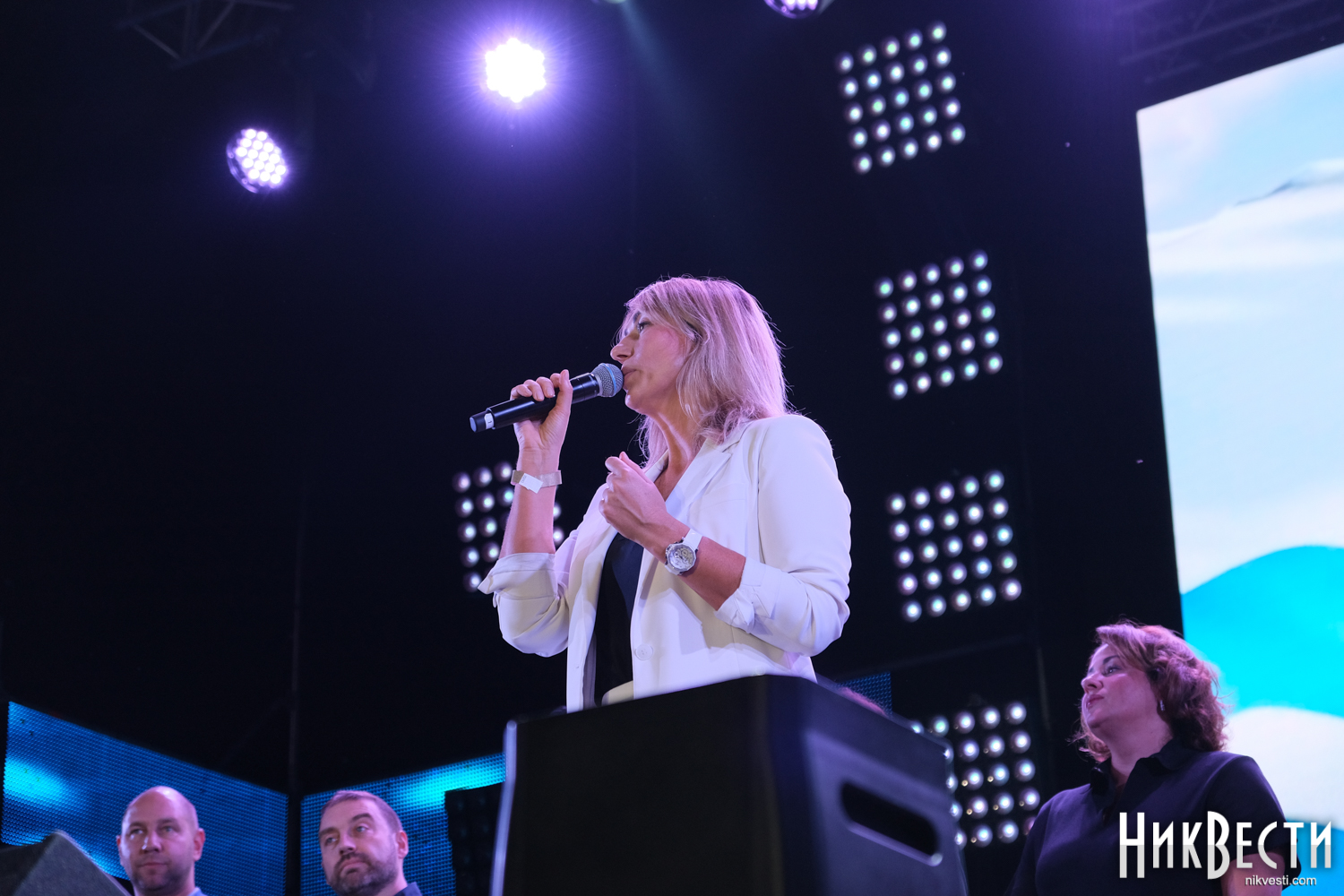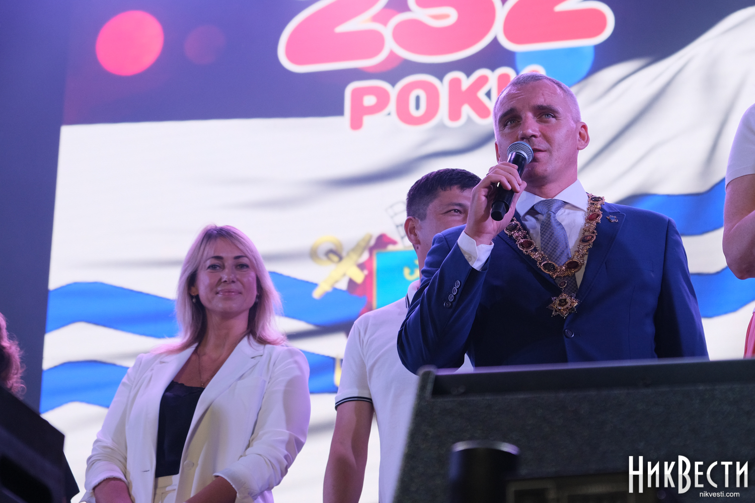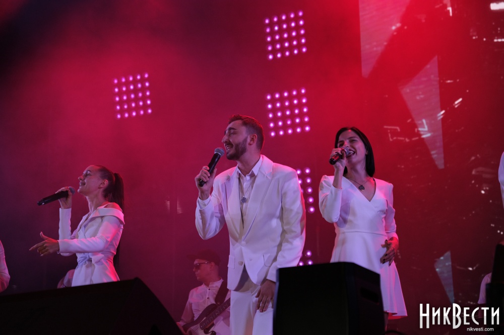 Во время концерта на сцену вышли представители власти, чтобы поздравить горожан с праздников: мэр Николаева Александр Сенкевич, глава Николаевской ОГА Виталий Ким, народный депутат Александр Гайду и депутаты-представители всех политсил в горсовете: Татьяна Домбровская («Слуга народа», Анна Ременникова («Пропозиція»), Анна Норд ( «Наш край»), Марина Мазанко («Оппозиционная платформа — За жизнь») и Станислав Мартиросов («Европейская Солидарность»).
