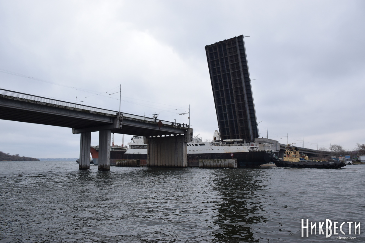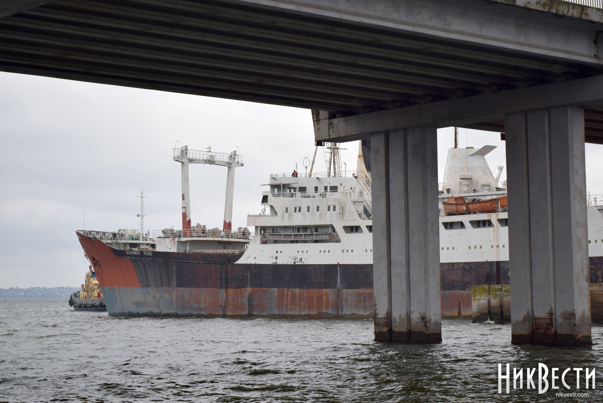 Во вторник, 14 декабря, в Николаеве развели Южно-Бугский (Варваровский), Ингульский и пешеходный понтонный мост, чтобы из акватории ГП «Николаевский судостроительный завод» вывели теплоход «Александр Пекс».