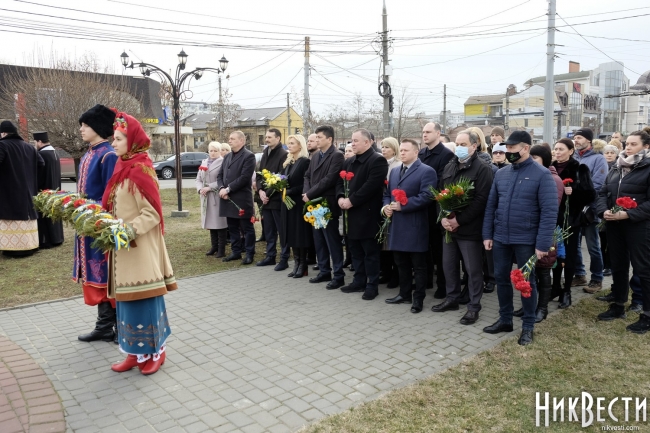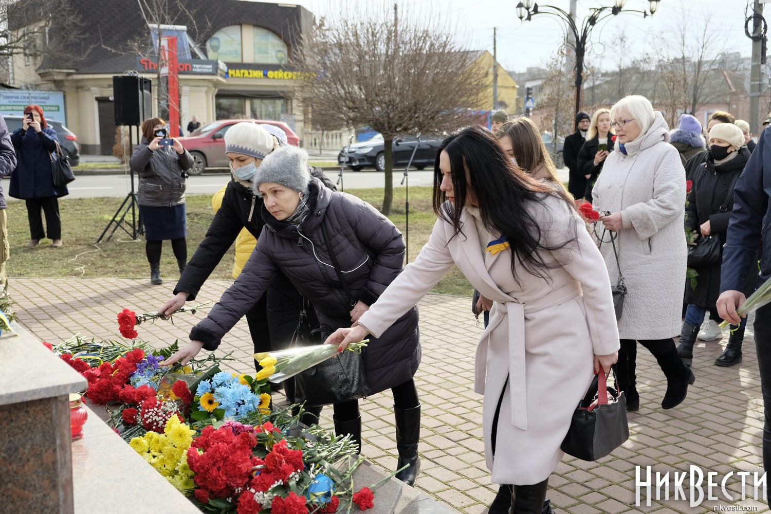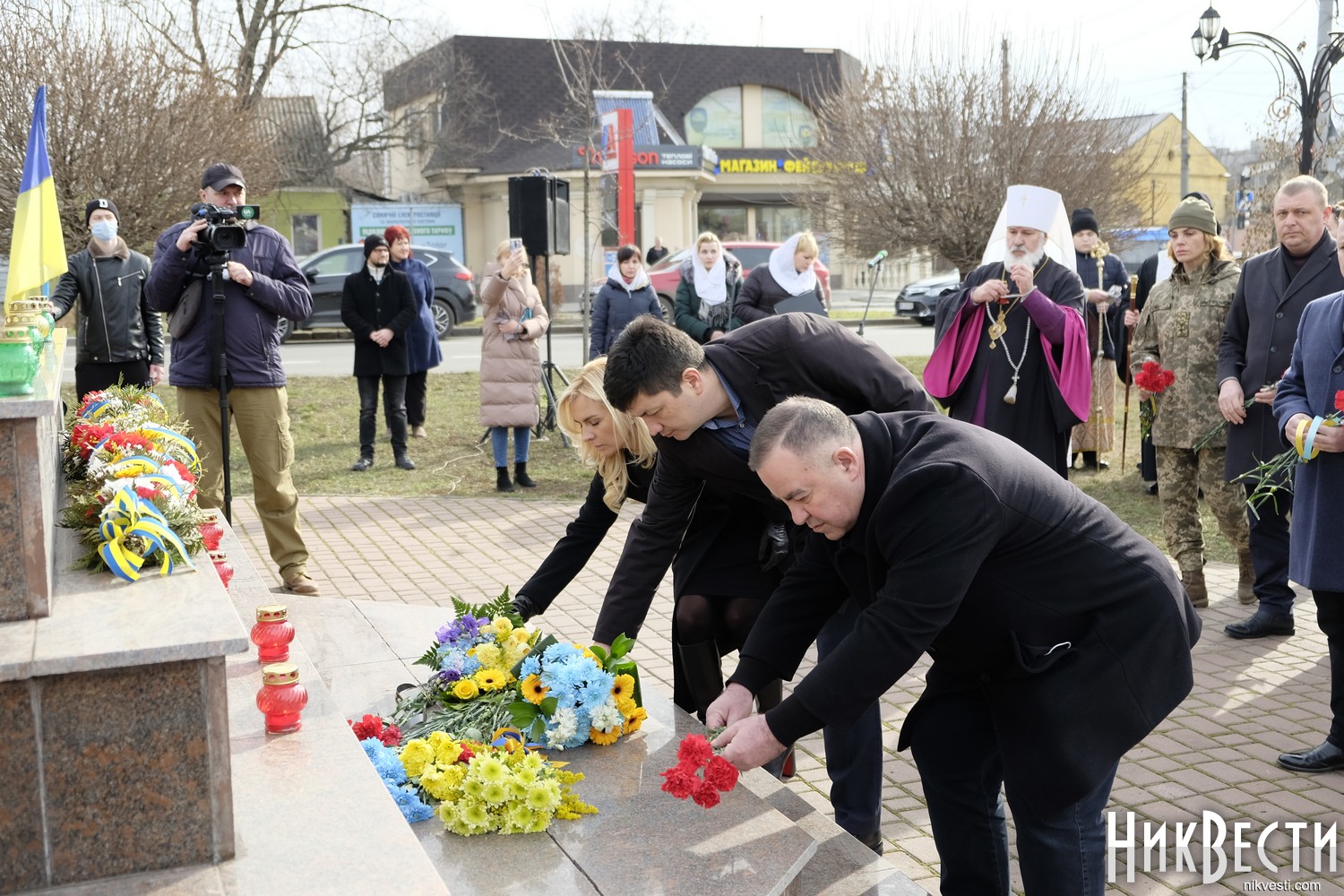 Возле мемориала Героев Небесной Сотни в Николаеве собрались представители областной и городской власти, военнослужащие Нацгвардии, а также все желающие. Свое почтение погибшим в результате трагических событий, среди прочих, засвидетельствовали глава Николаевской ОГА Виталий Ким, глава Николаевского облсовета Анна Замазеева, вице-мэры Виталий Луков и Юрий степанец, секретарь горсовета Николаева Дмитрий Фалько и замглавы ОГА Юрий Гранатуров