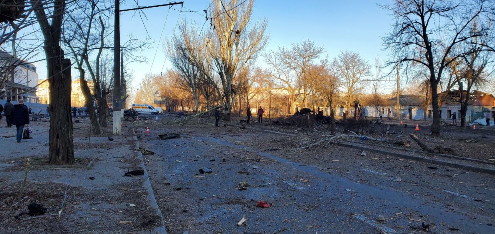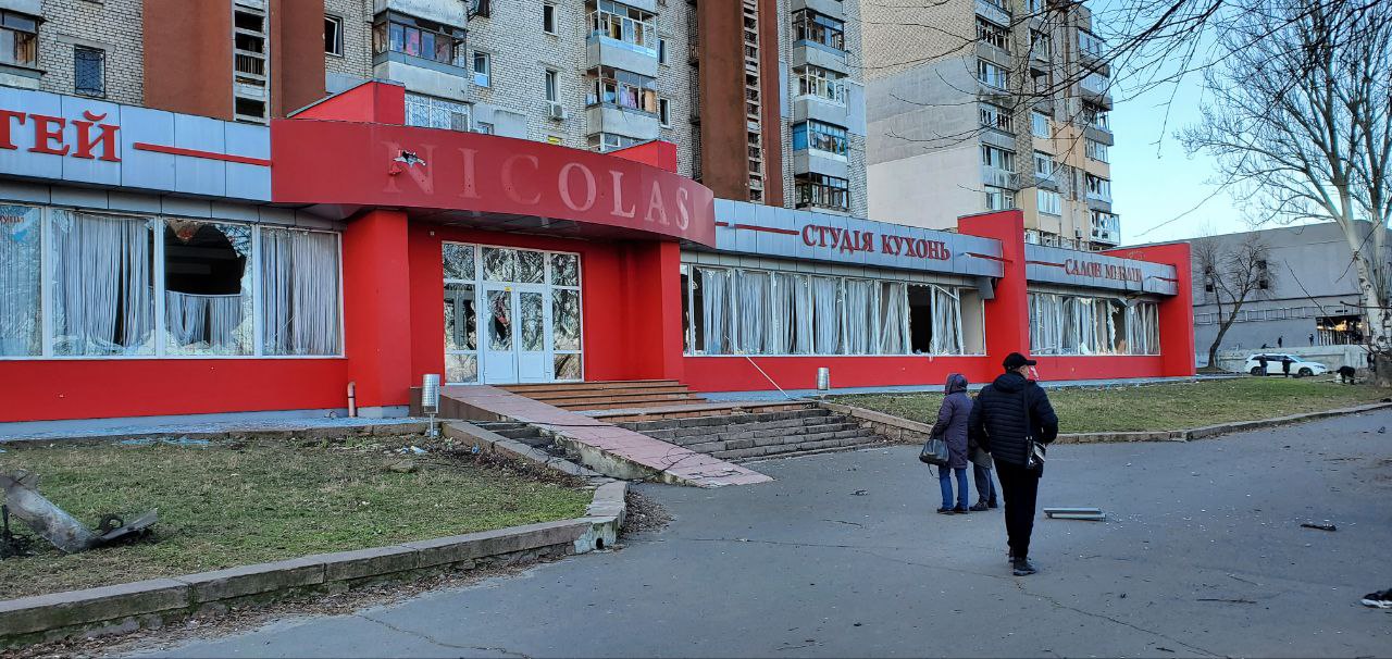 В результате боя украинских военных с российскими оккупантами 26 февраля возле Дома торговли «Южный буг» в Николаеве пострадали жилые дома и магазины.