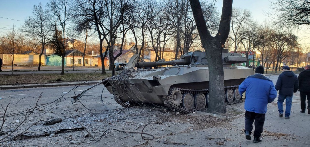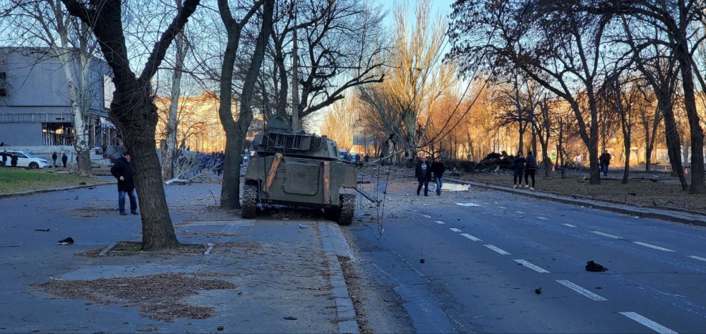 На проспекте Центральном в районе пересечения с улицей 9-я Слободская вечером, 26 февраля, Вооруженные силы Украины и Силы территориальной обороны Николаевской области вели бой с российскими оккупантам. Украинские военные разбили российские танки и не допустили их дальнейшего наступления на город.