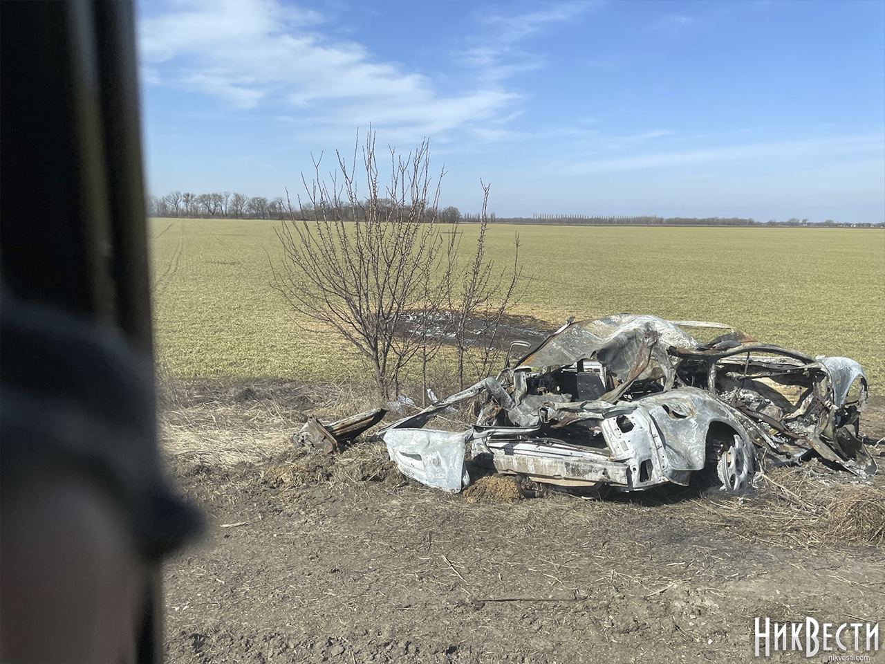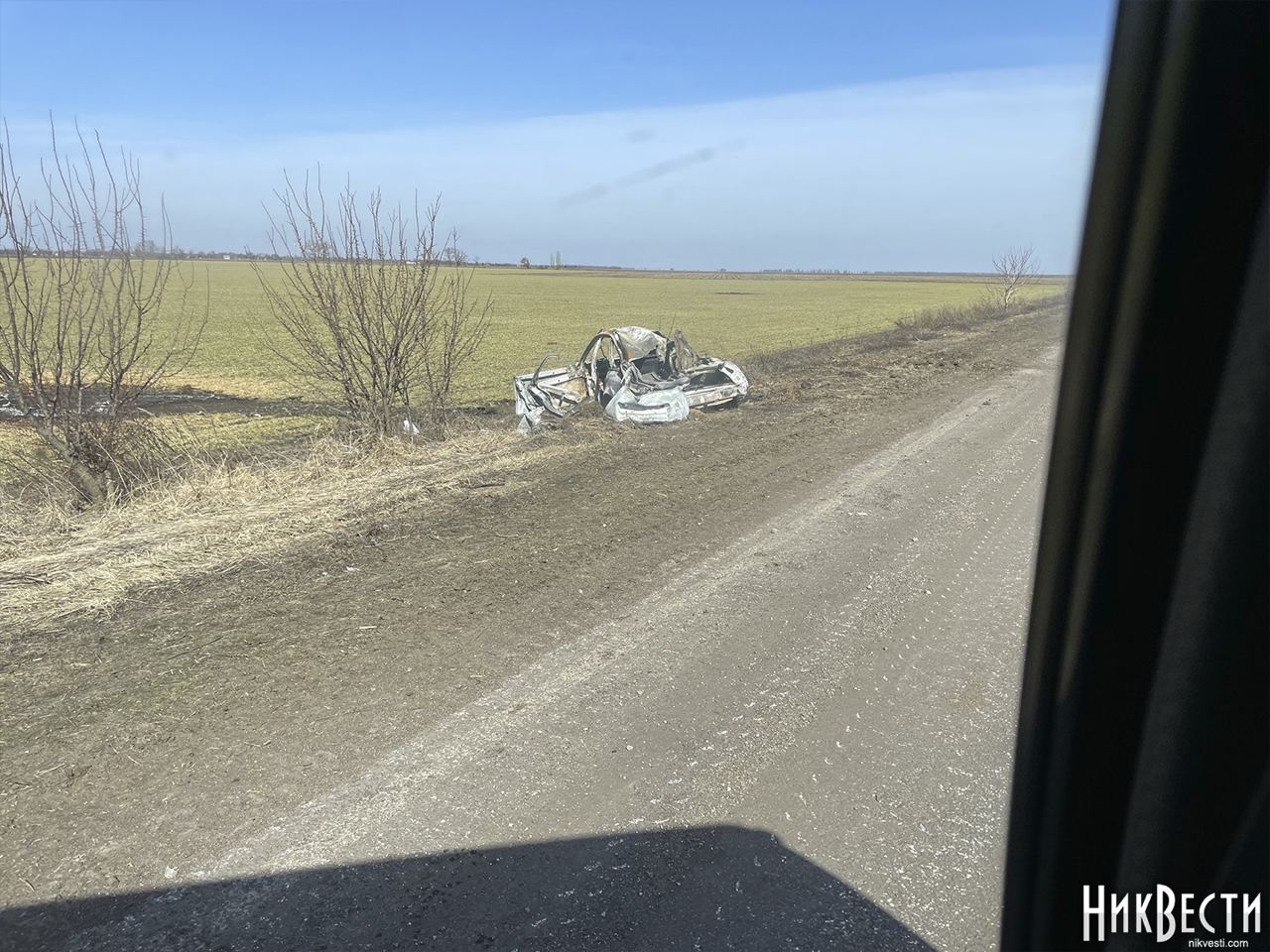 Далее на фото трасса Николаев - Кропивницкий, прямое попадание в гражданское авто.