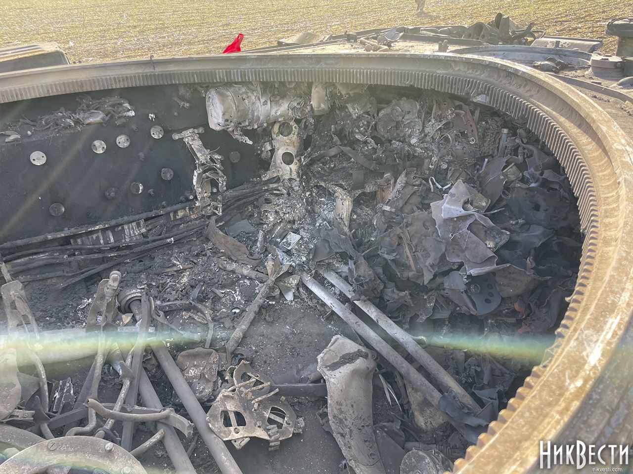 На подъездах к селу в лесопосадках, а также на местной ферме была вражеская техника. На фото видно то, что осталось от военной техники.
