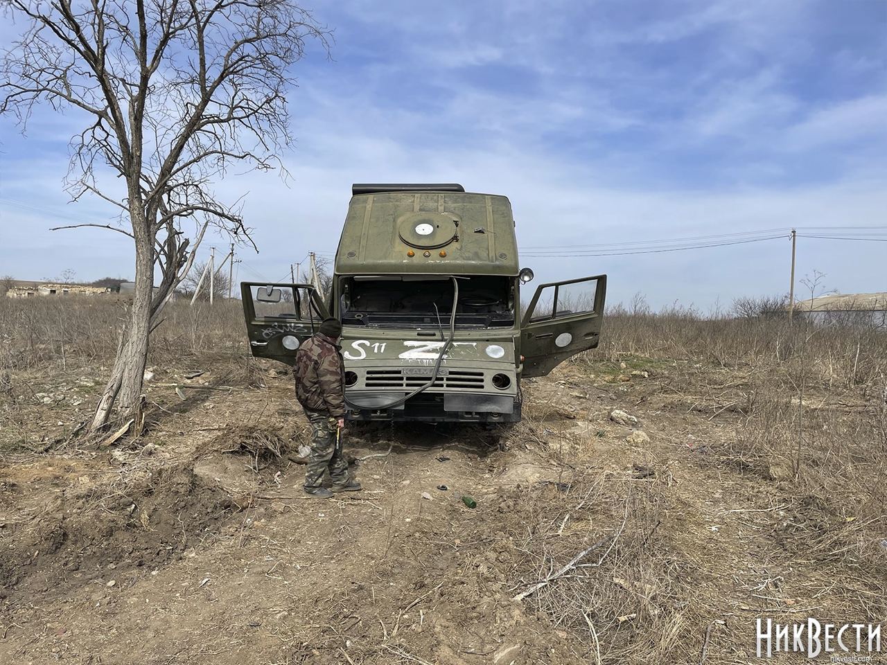 Этот российский КАМАЗ надписью «Z» украинским бойцам удалось починить в поле и он своим ходом поехал: