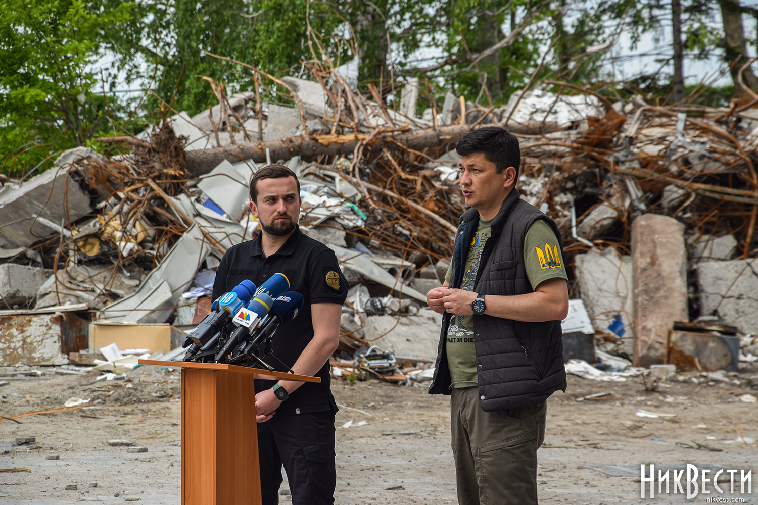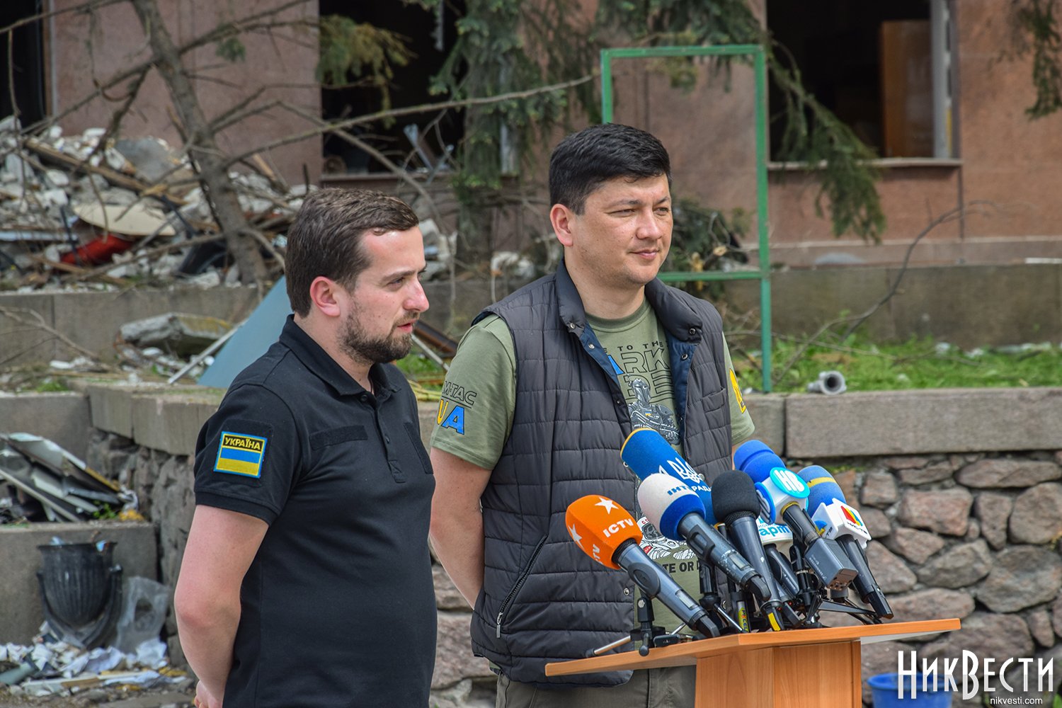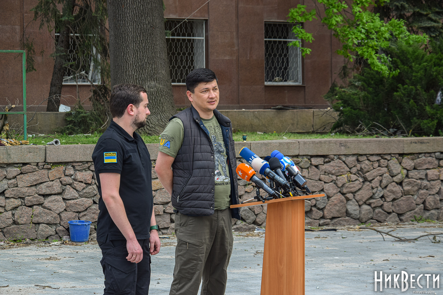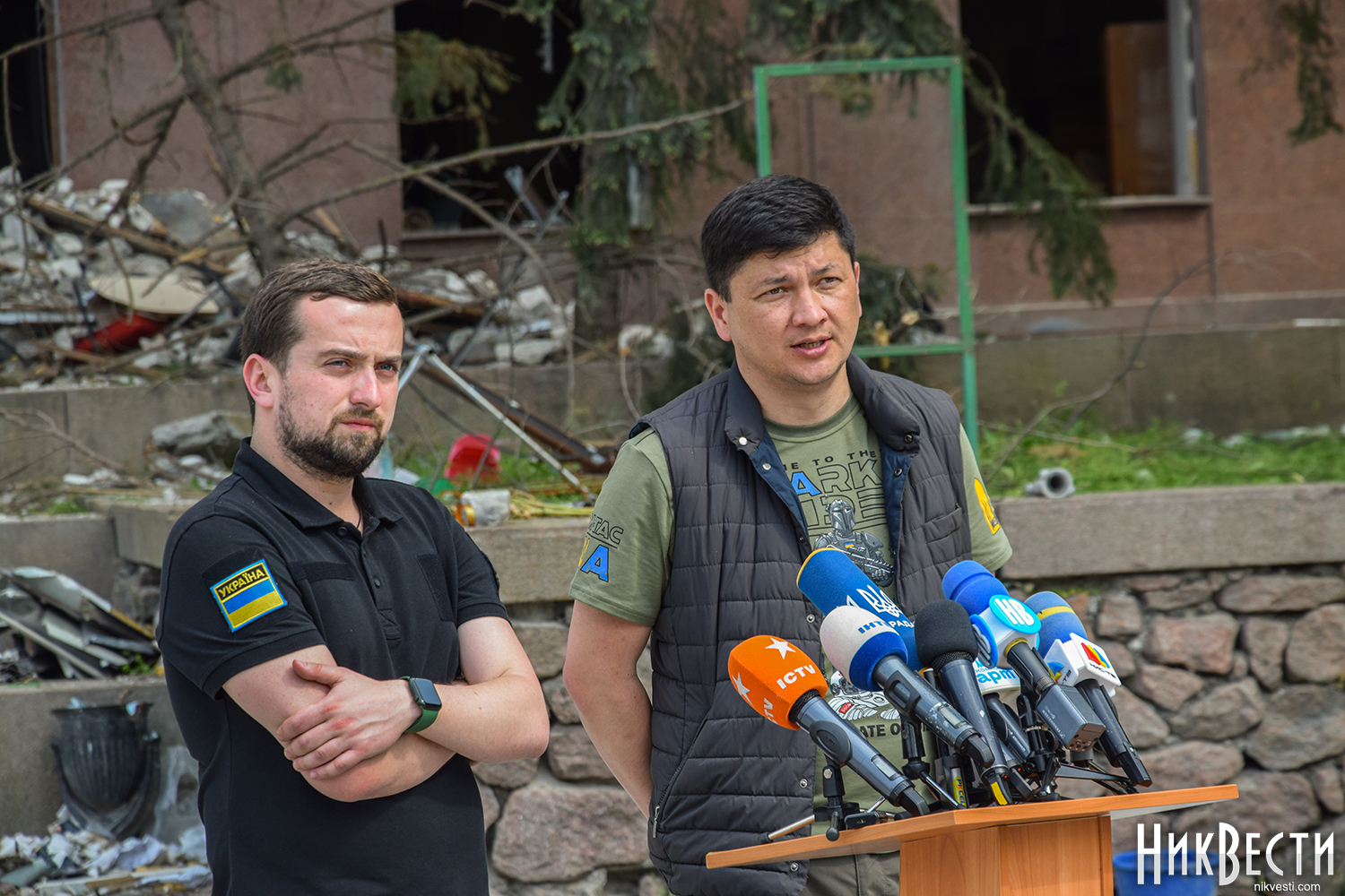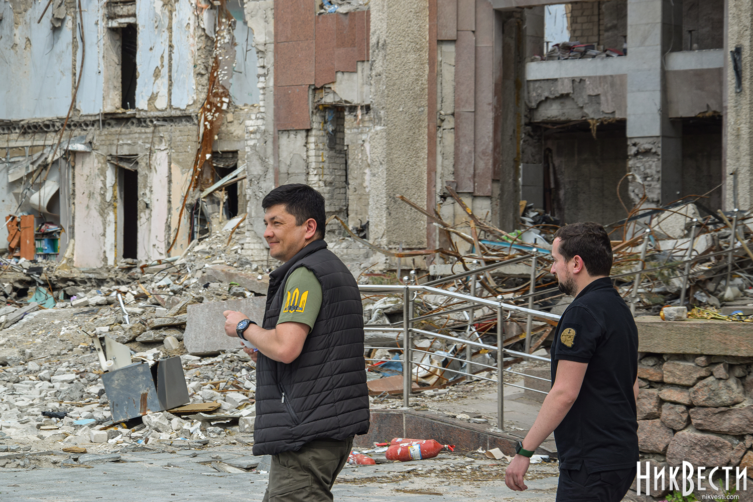 У здания разрушенной Николаевской ОГА вместе с военным губернатором Виталием Кимом они дали пресс-конференцию для журналистов Николаева, сообщают НикВести.